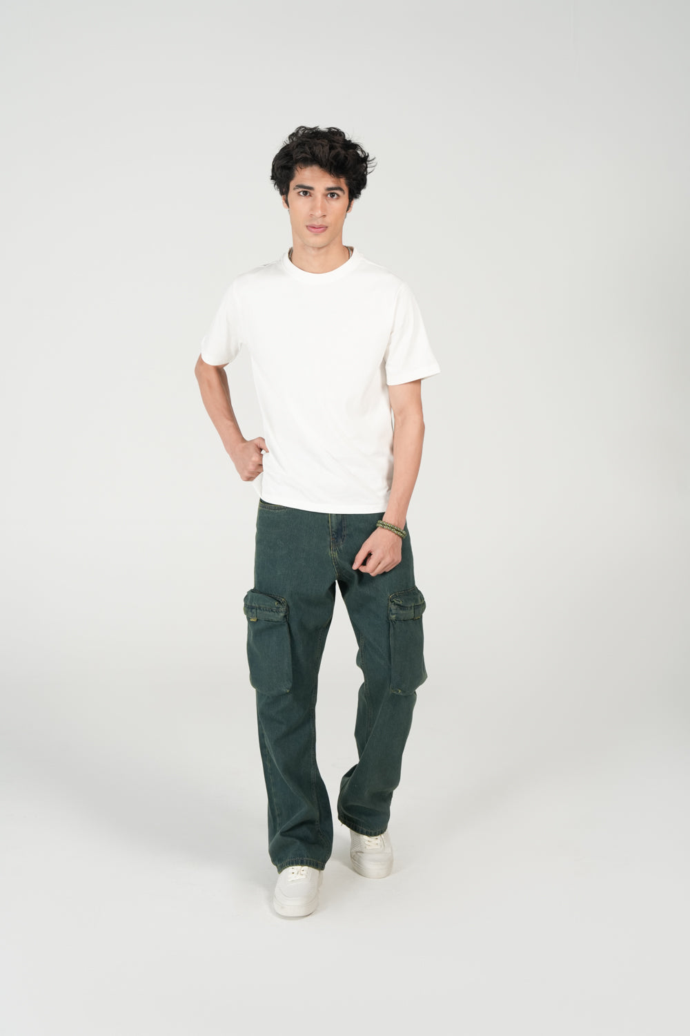 Crisp White crew neck tee.