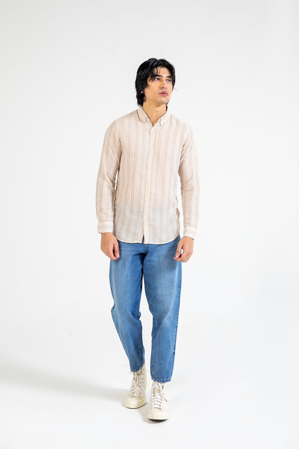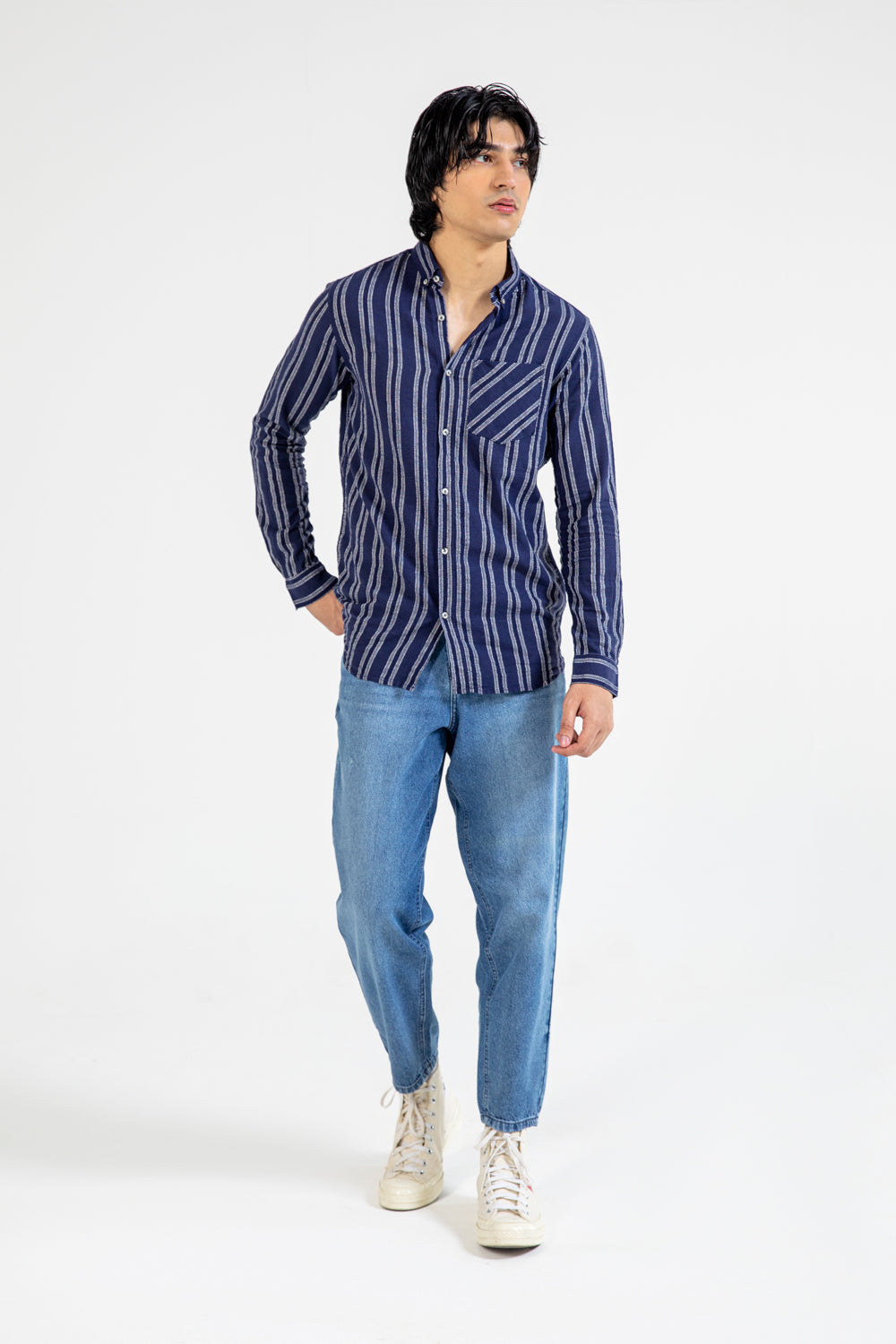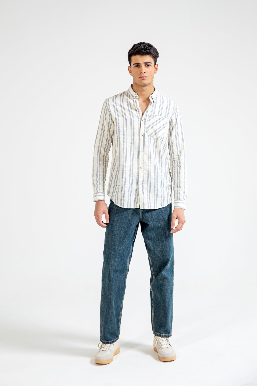 BUTTON DOWN TEXTURED STRIPE SHIRT