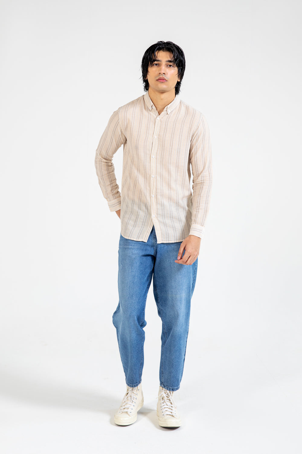 BUTTON DOWN TEXTURED STRIPE SHIRT