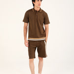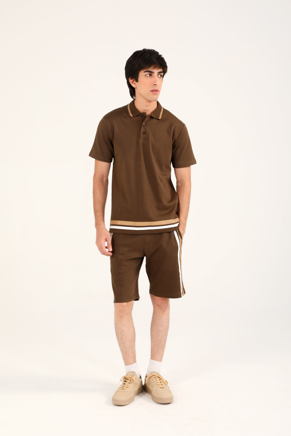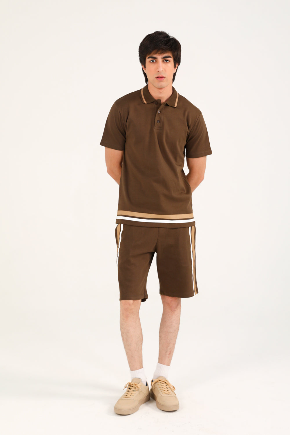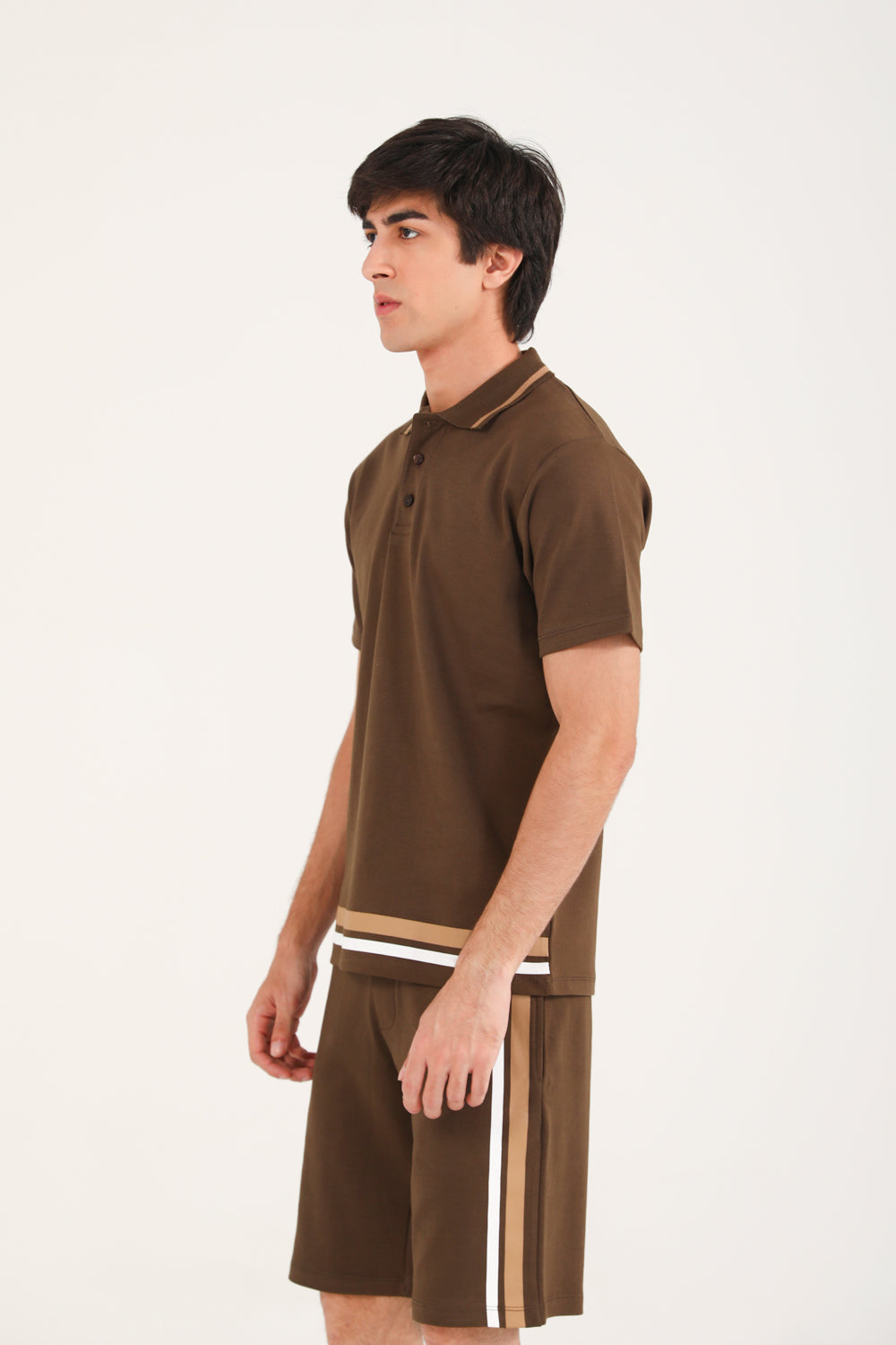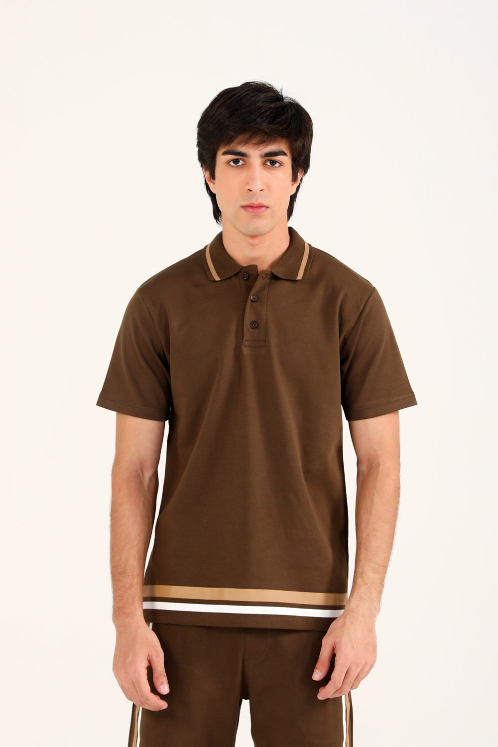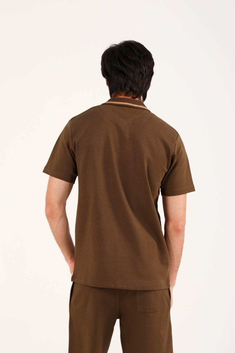 A brown cotton polo with a super soft feel, finished with matching buttons and contrasting trims on the collar and hem for a polished touch.
