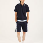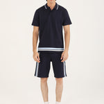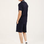 A navy cotton polo with a super soft feel, finished with matching buttons and contrasting trims on the collar and hem for a polished touch.