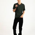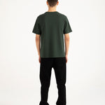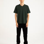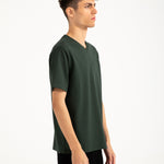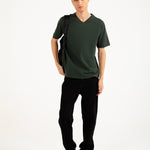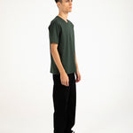 Olive tee in a cotton synthetic blend with a plain, clean finish.