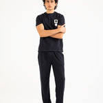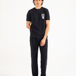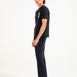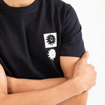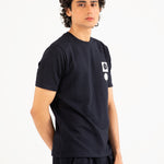 Navy cotton synthetic blend tee with a textured finish and a small white graphic on the front.