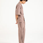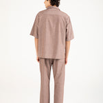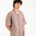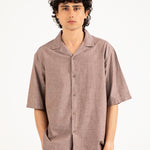 Brown shirt in a cotton linen blend with a relaxed baggy fit and resort collar.