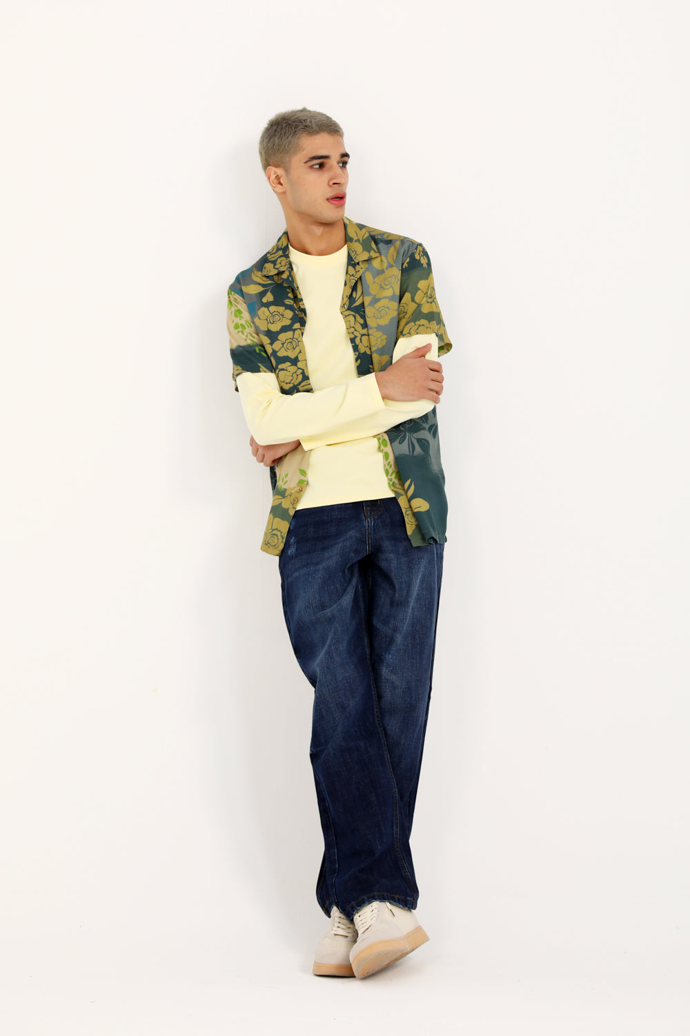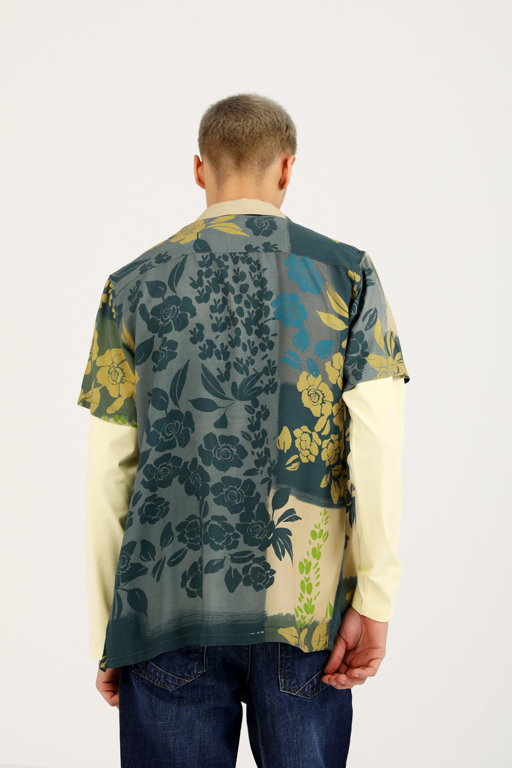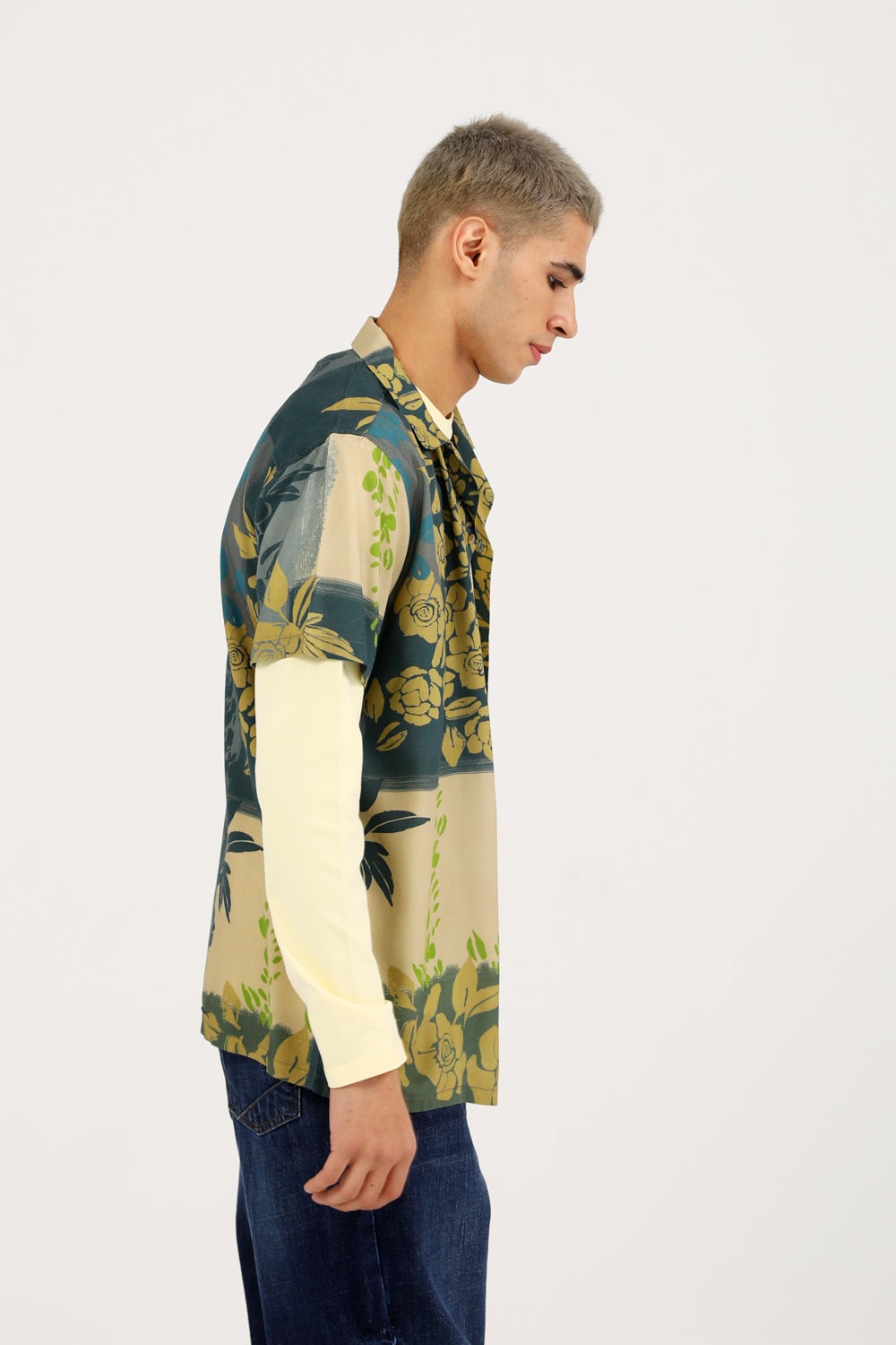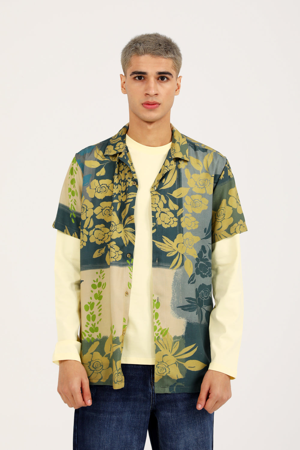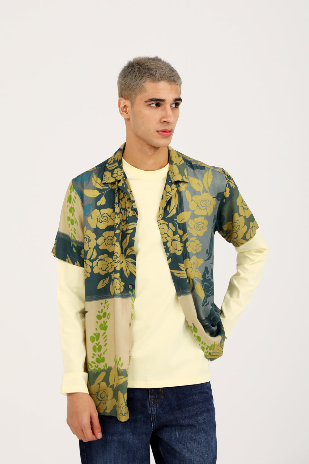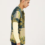 A green resort collar shirt with an all over floral print that adds an expressive touch.