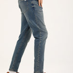 Carrot fit denim in a vintage blue tone with a tapered shape.