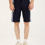 Navy knitted shorts in cotton with a drawstring waistband and striped sides that add a sporty touch to a laid-back style.