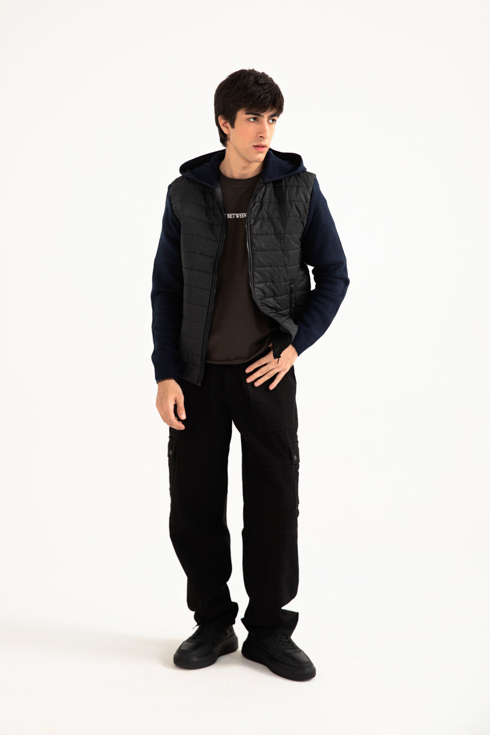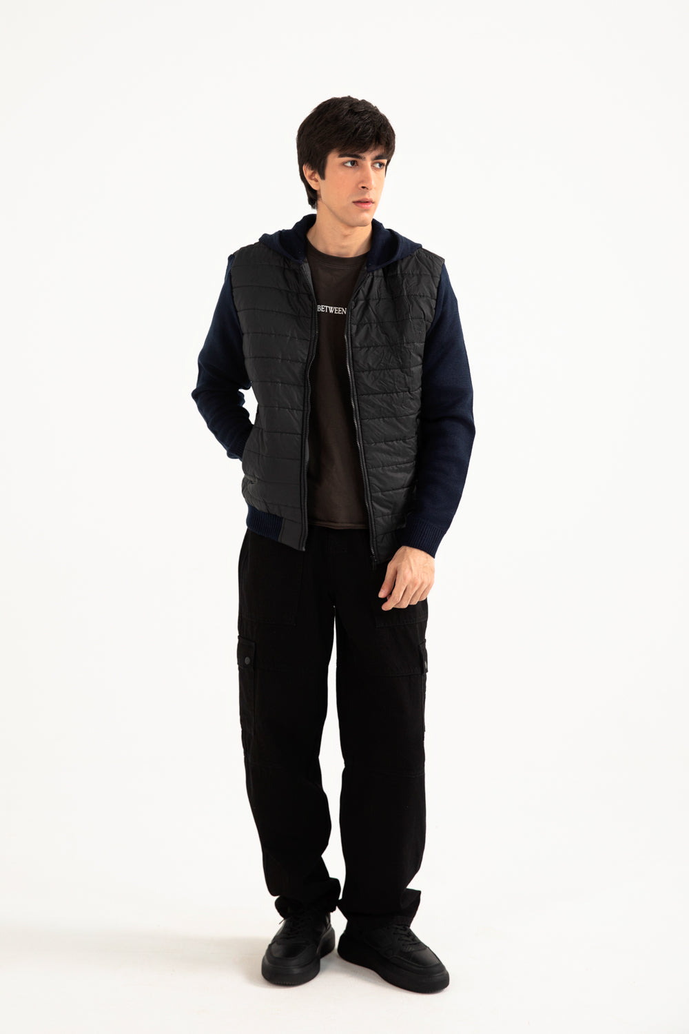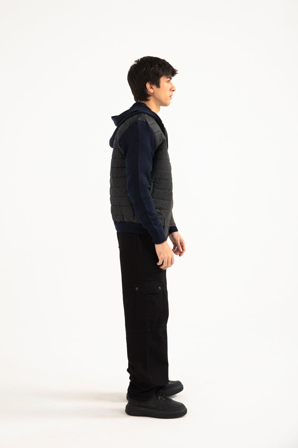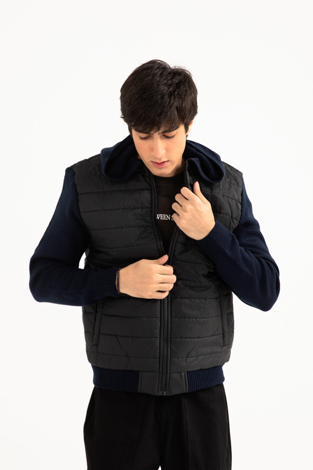 QUILTED CONTRAST SLEEVE HOODED JACKET