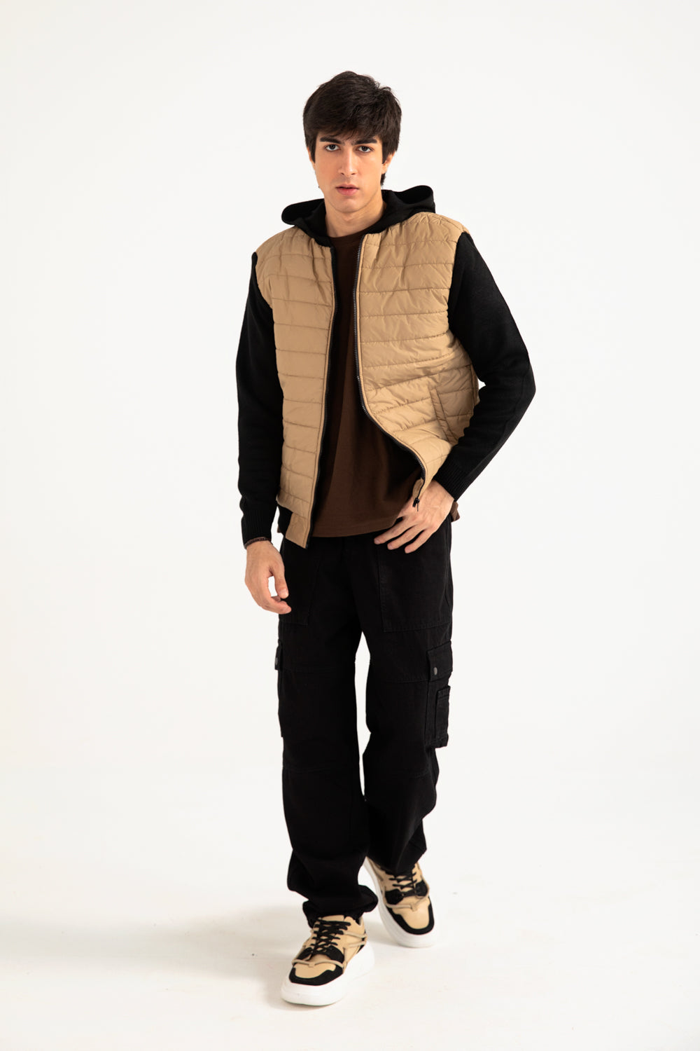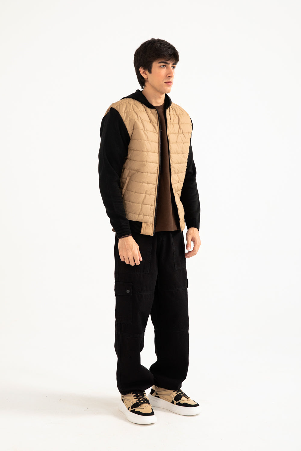 QUILTED CONTRAST SLEEVE HOODED JACKET
