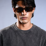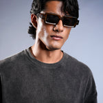 Brown low square sunglasses with a sleek, modern design for a stylish look.