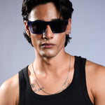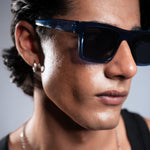 New York square sunglasses with a midnight blue frame and sleek black lenses for a bold and sophisticated look.