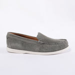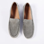 These grey suede loafers blend effortless style with everyday comfort. Set on a crisp white sole, they offer a refined yet contemporary look, perfect for any occasion.