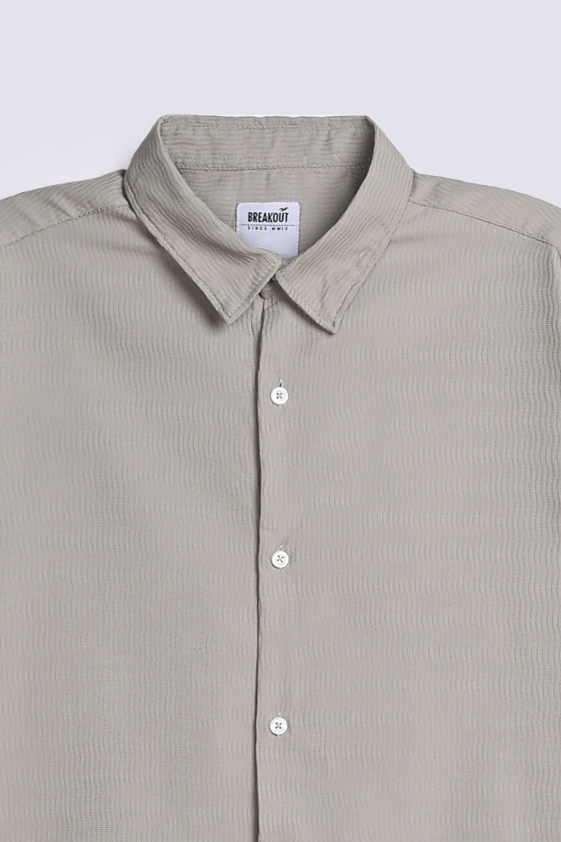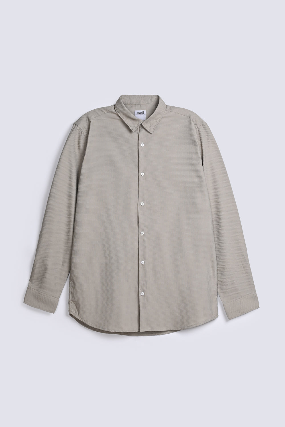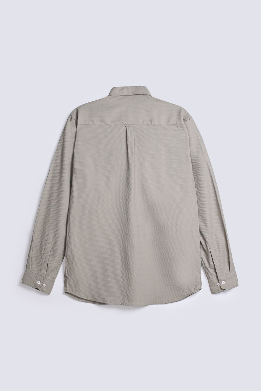 Sage green shirt in a cotton synthetic blend, featuring full length sleeves and white buttons.