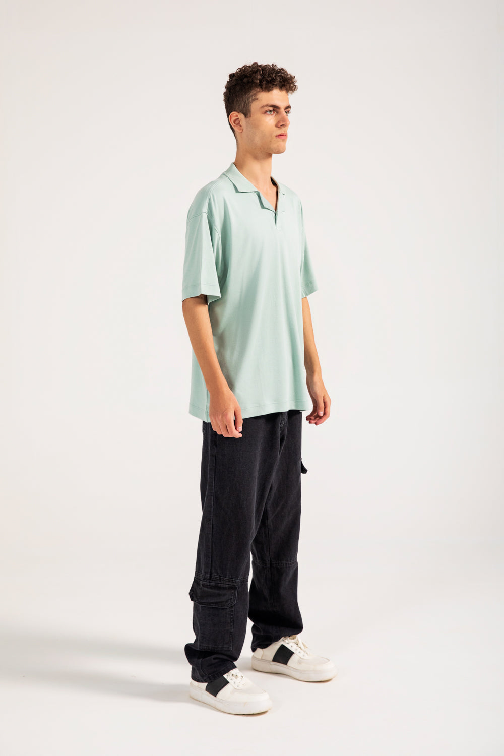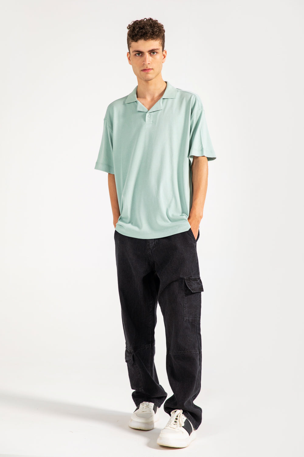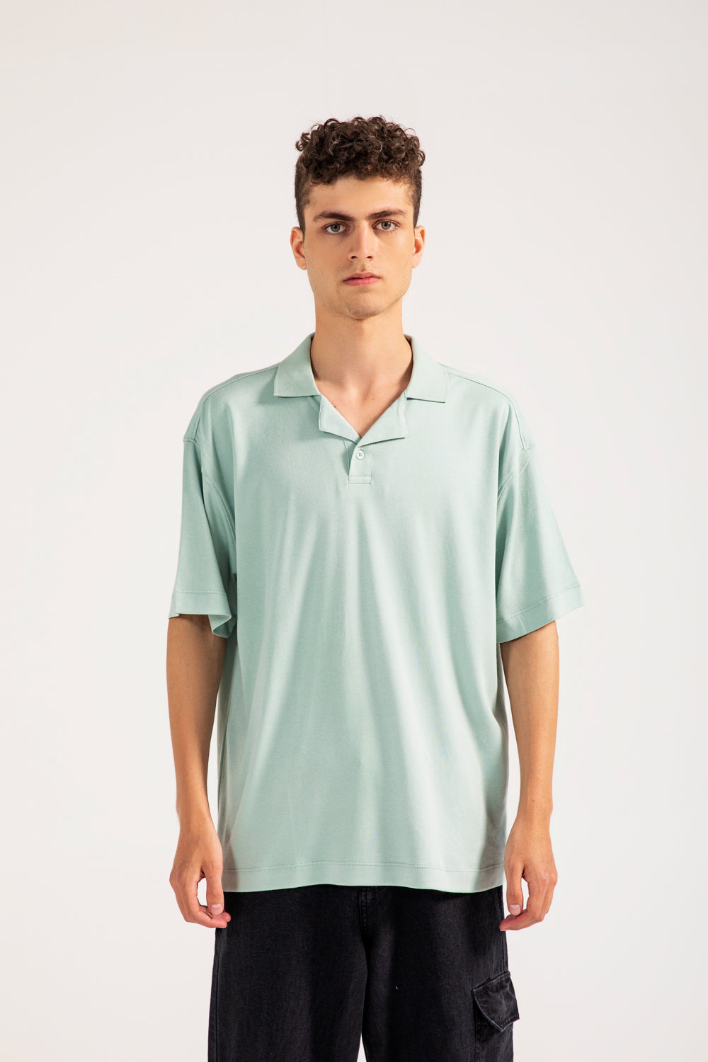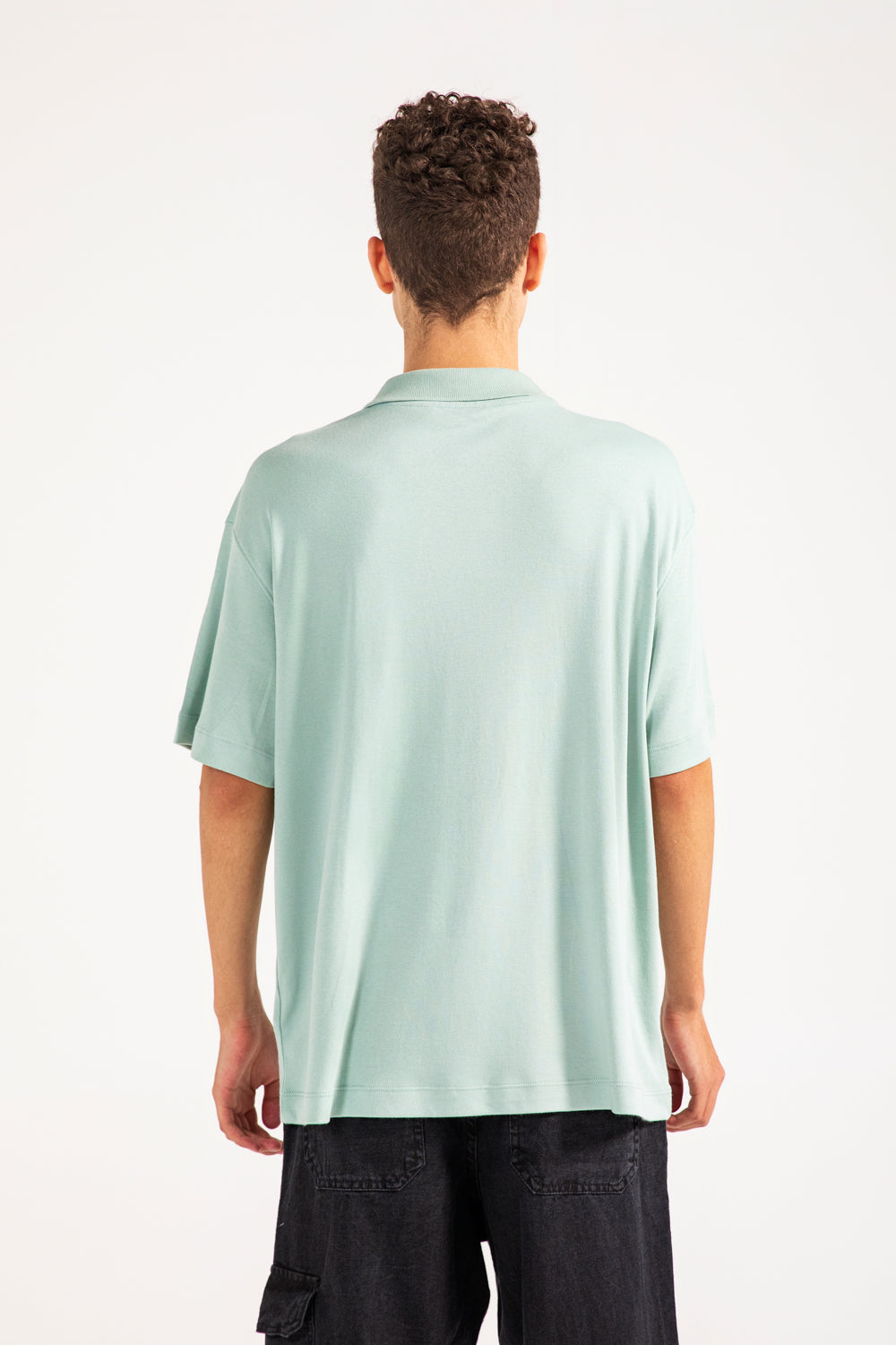 BAGGY FIT TEXTURED JOHNNY COLLAR POLO