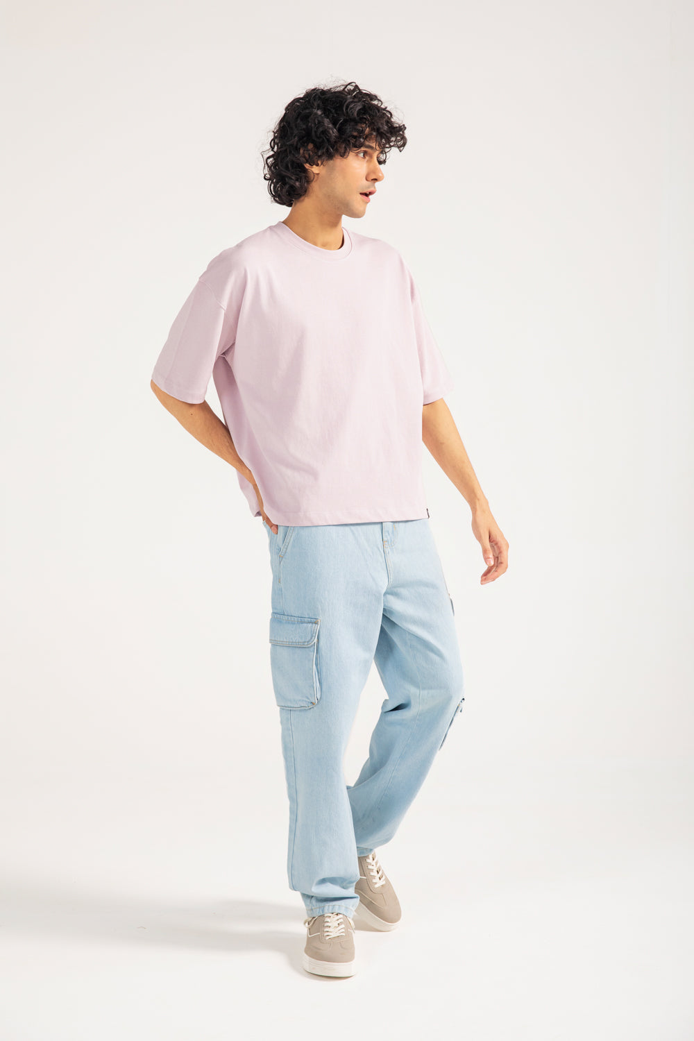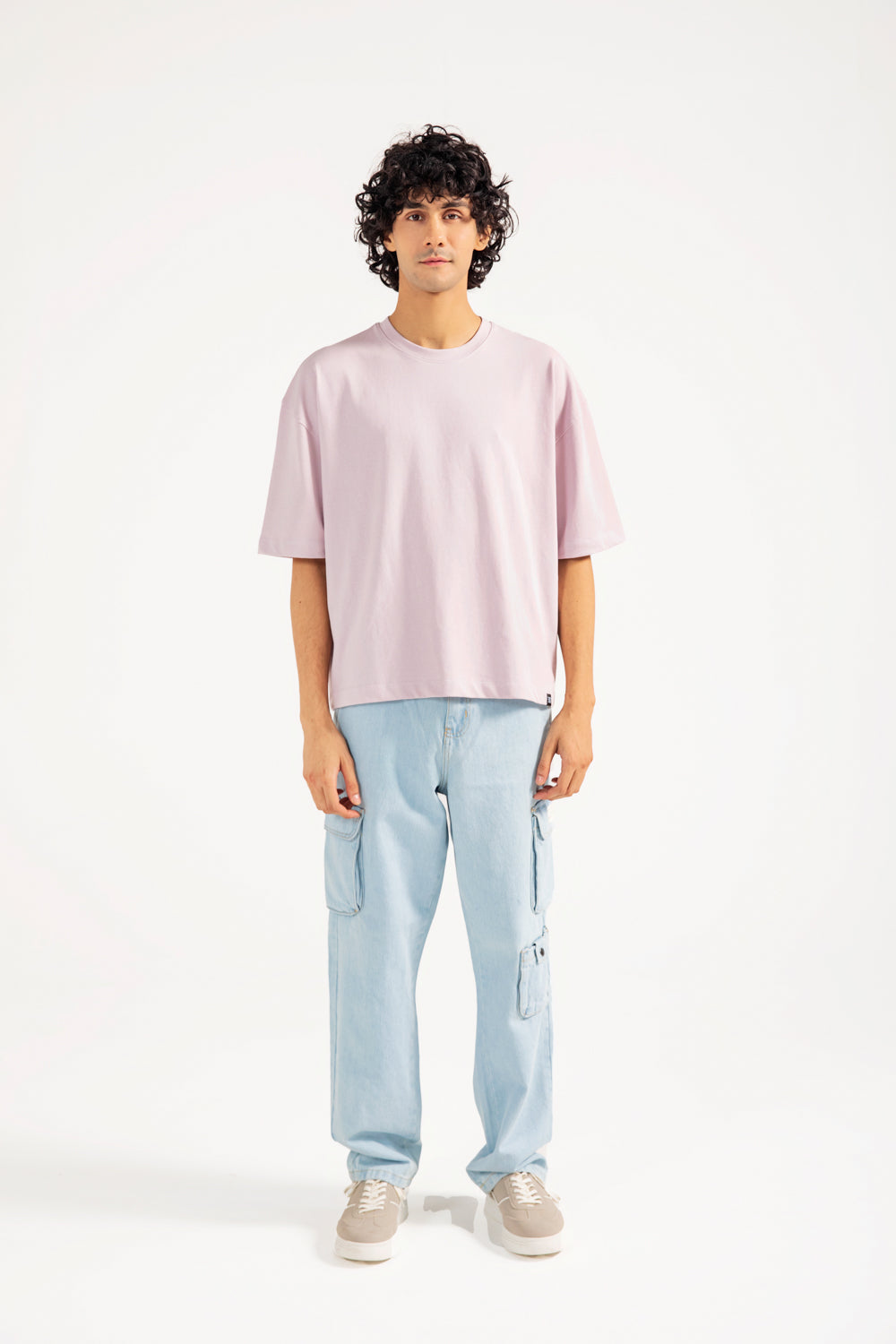 Boxy fit tee crafted from soft cotton with a clean, plain finish.