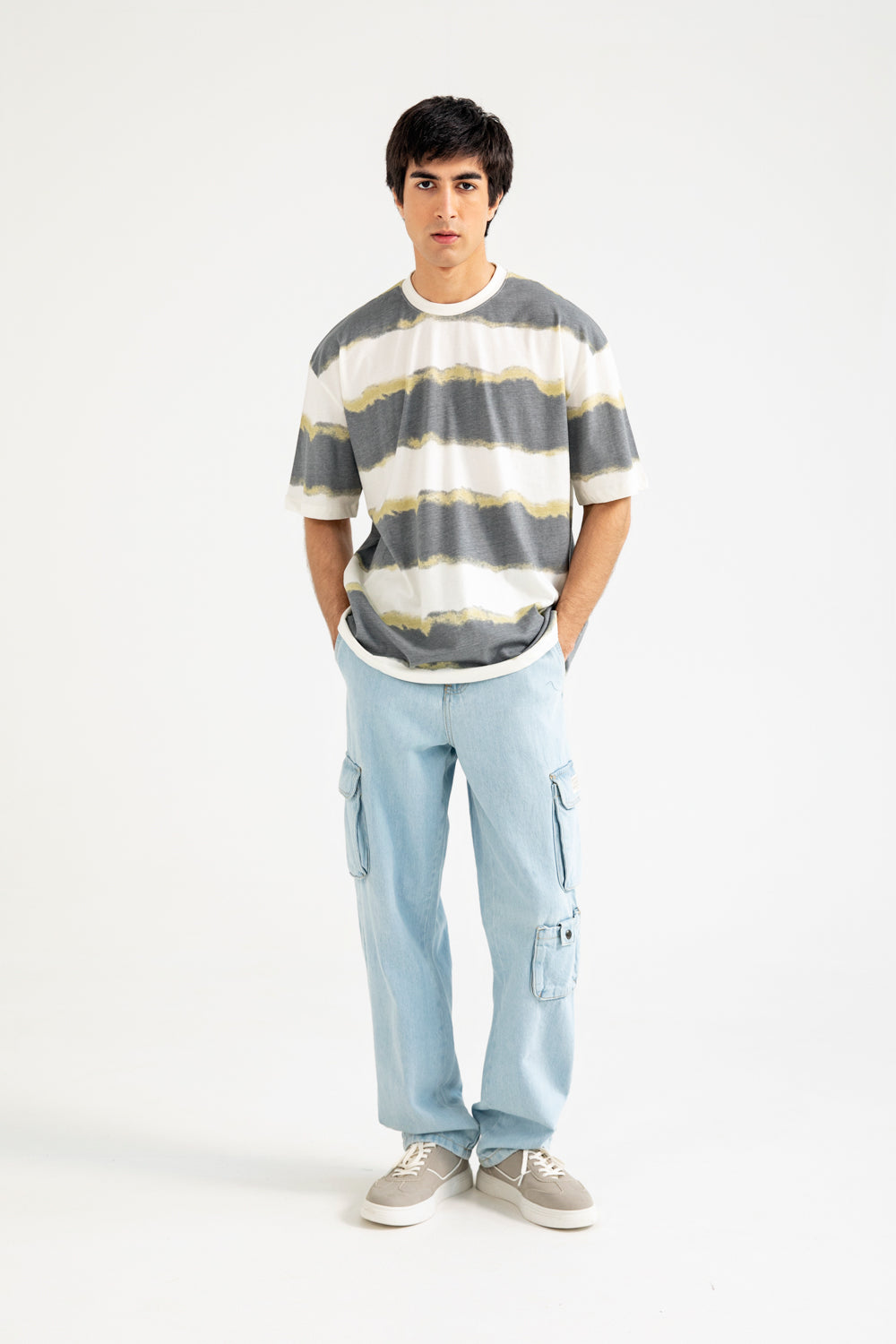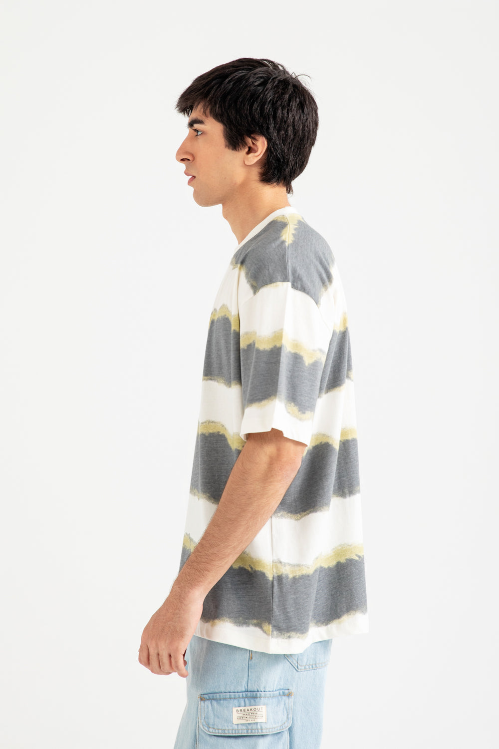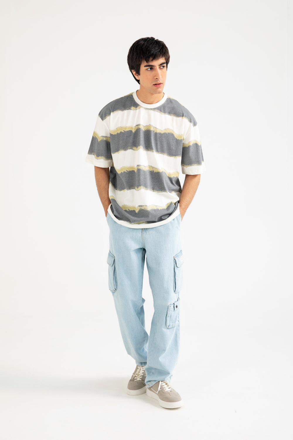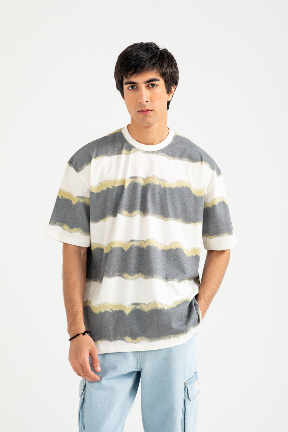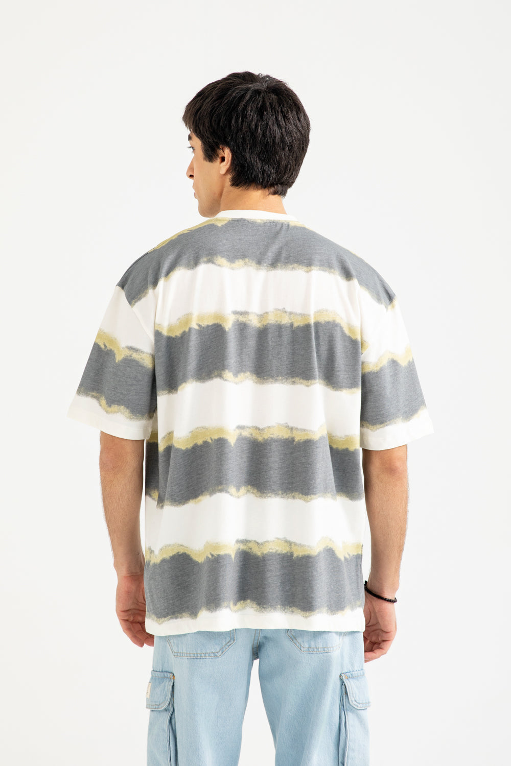 Cotton tee in a relaxed baggy fit, featuring a horizontal striped print.