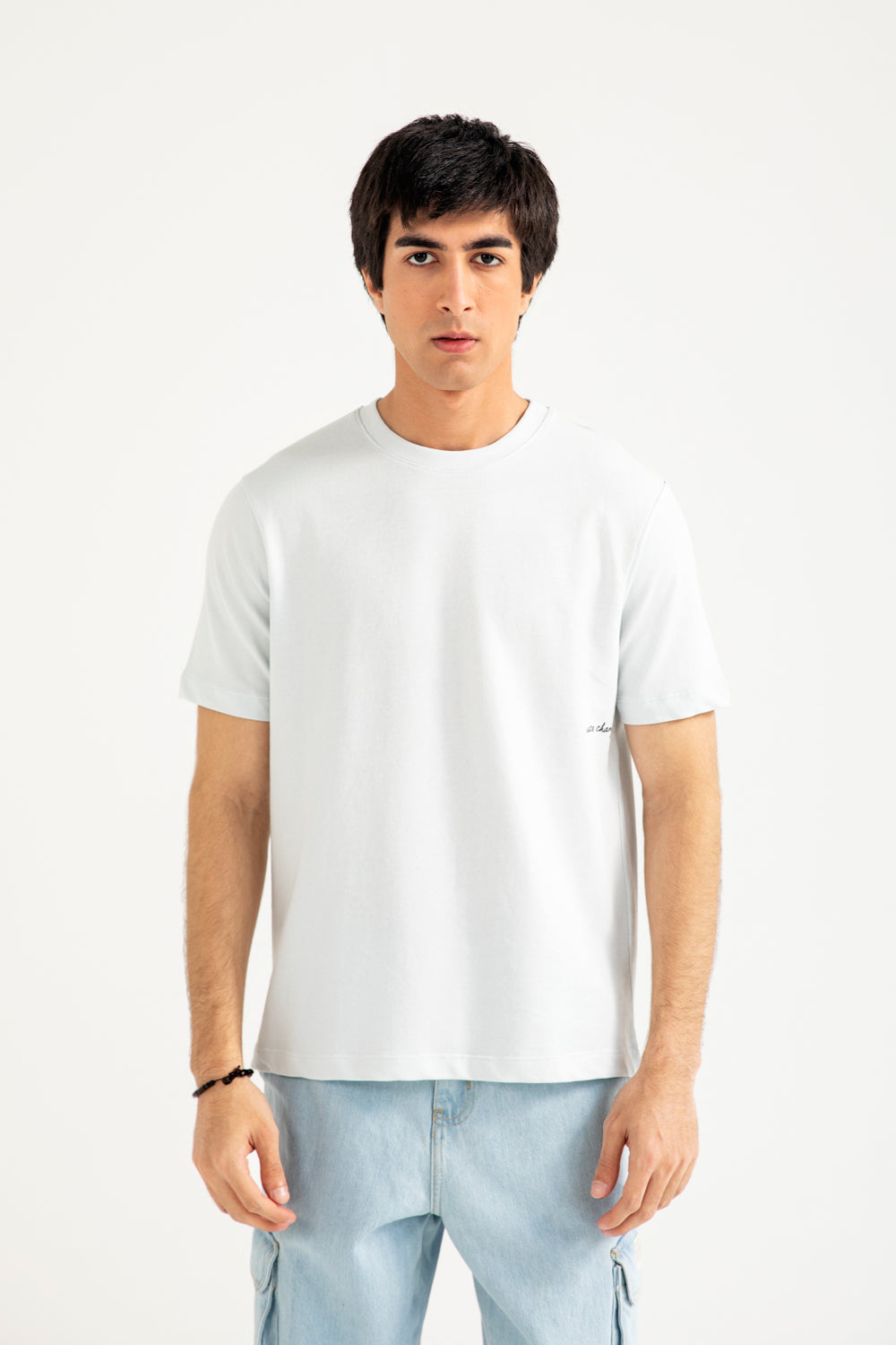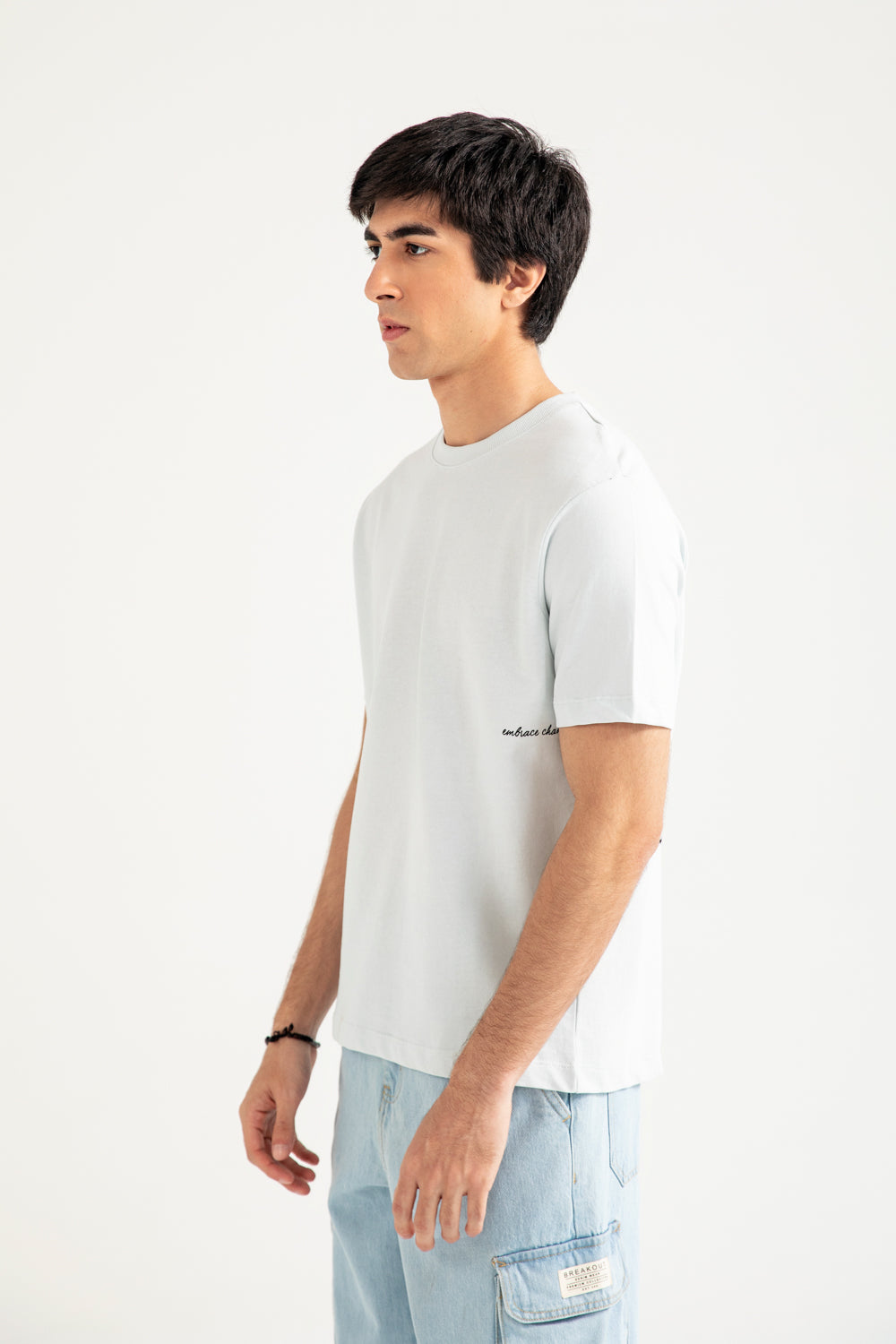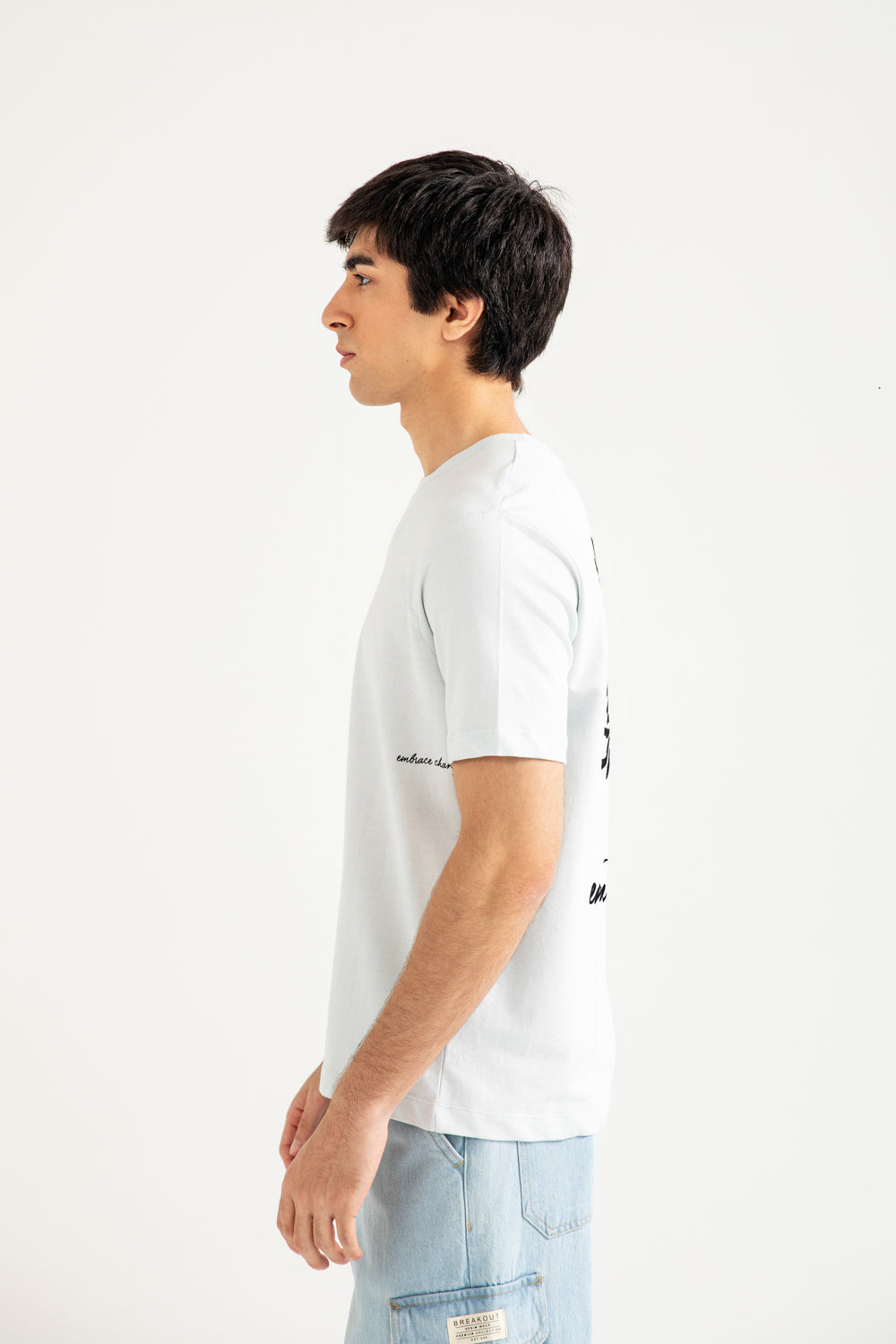 Crafted from cotton terry, this light grey tee features a clean plain front and a bold black flock printed graphic covering the back.
