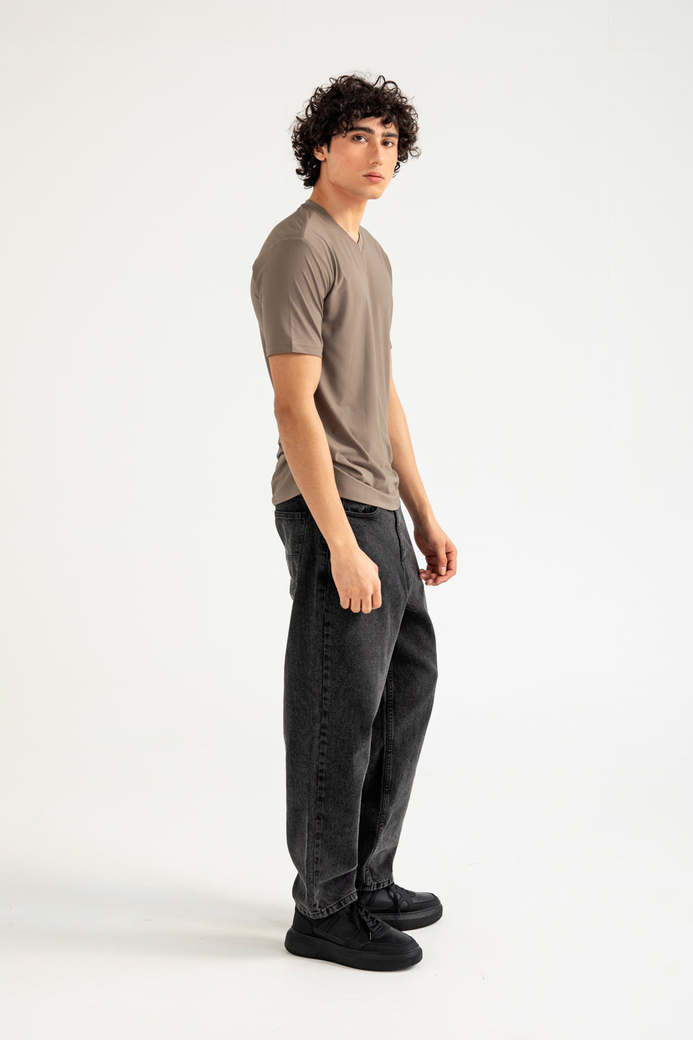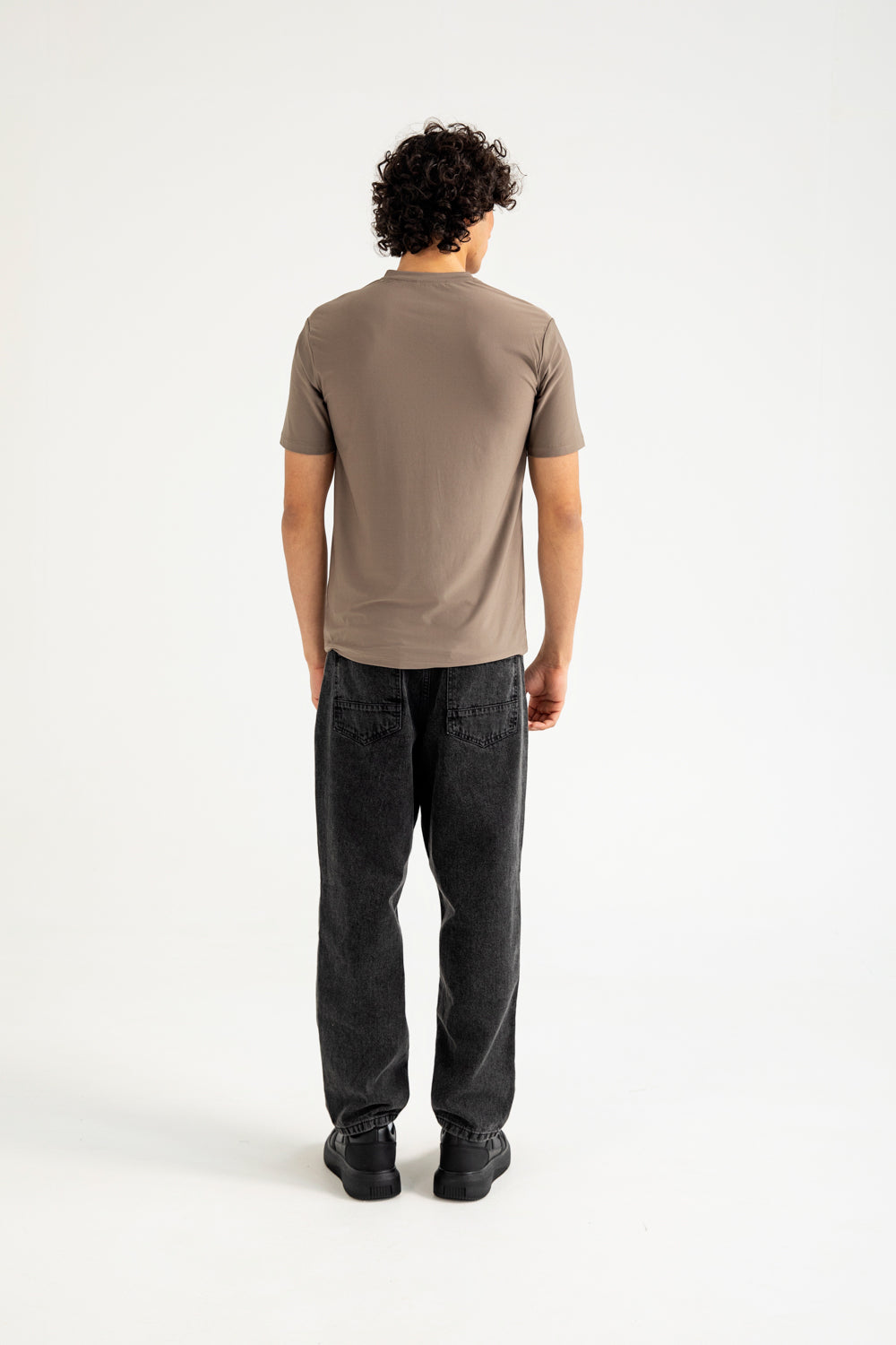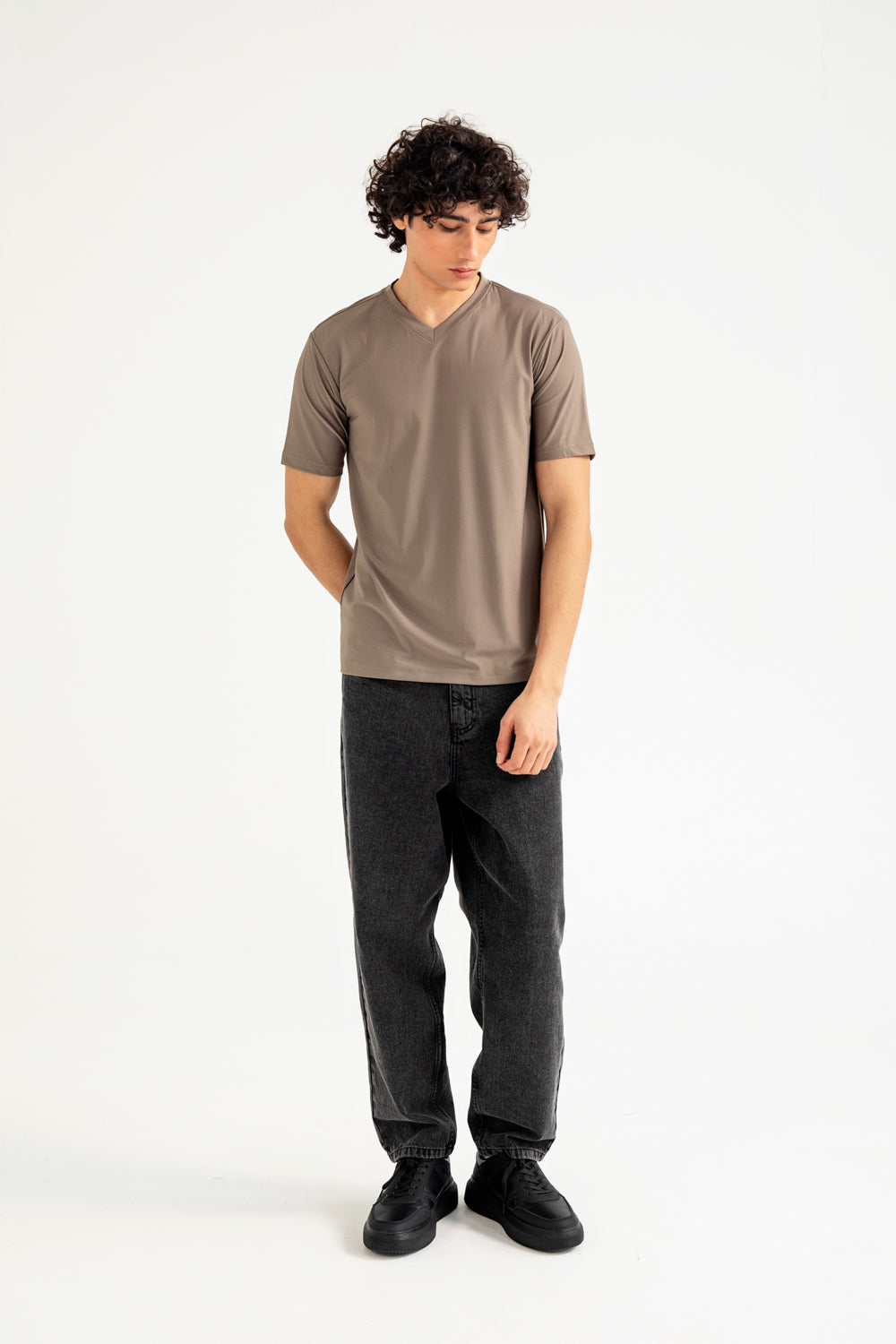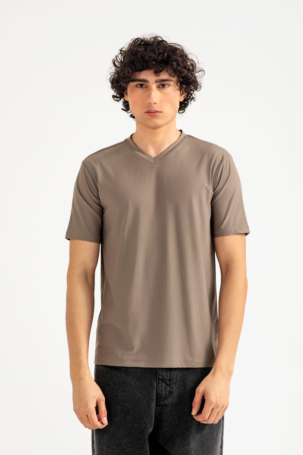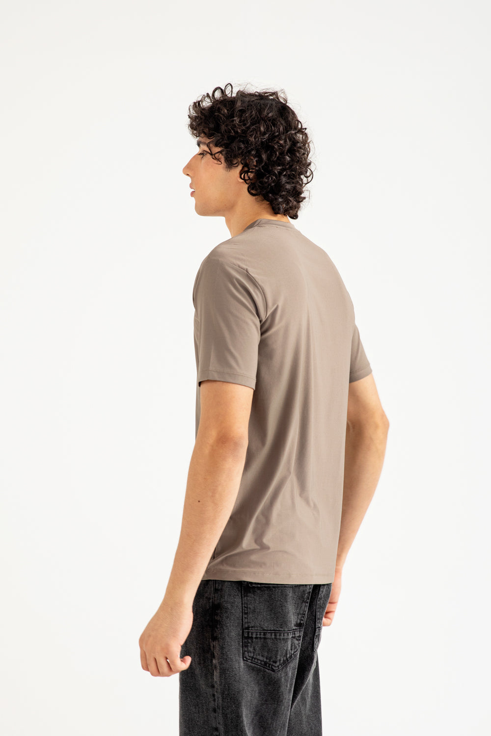 Brown plain tee in a synthetic blend with a smooth, super soft feel.