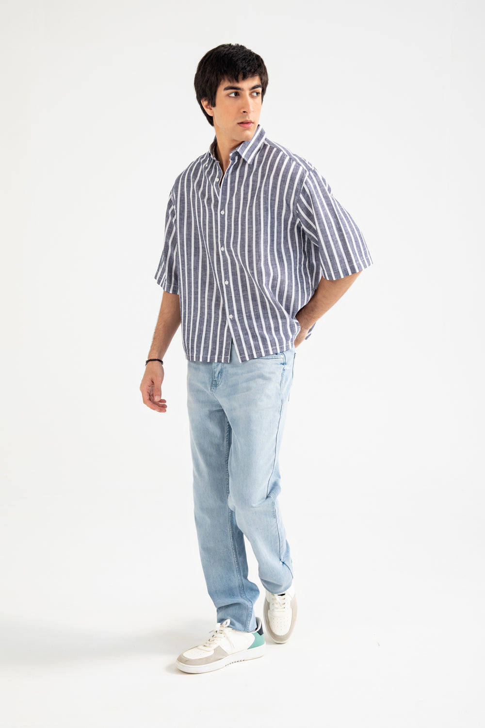 BOXY FIT LINEN STRIPER SHIRT