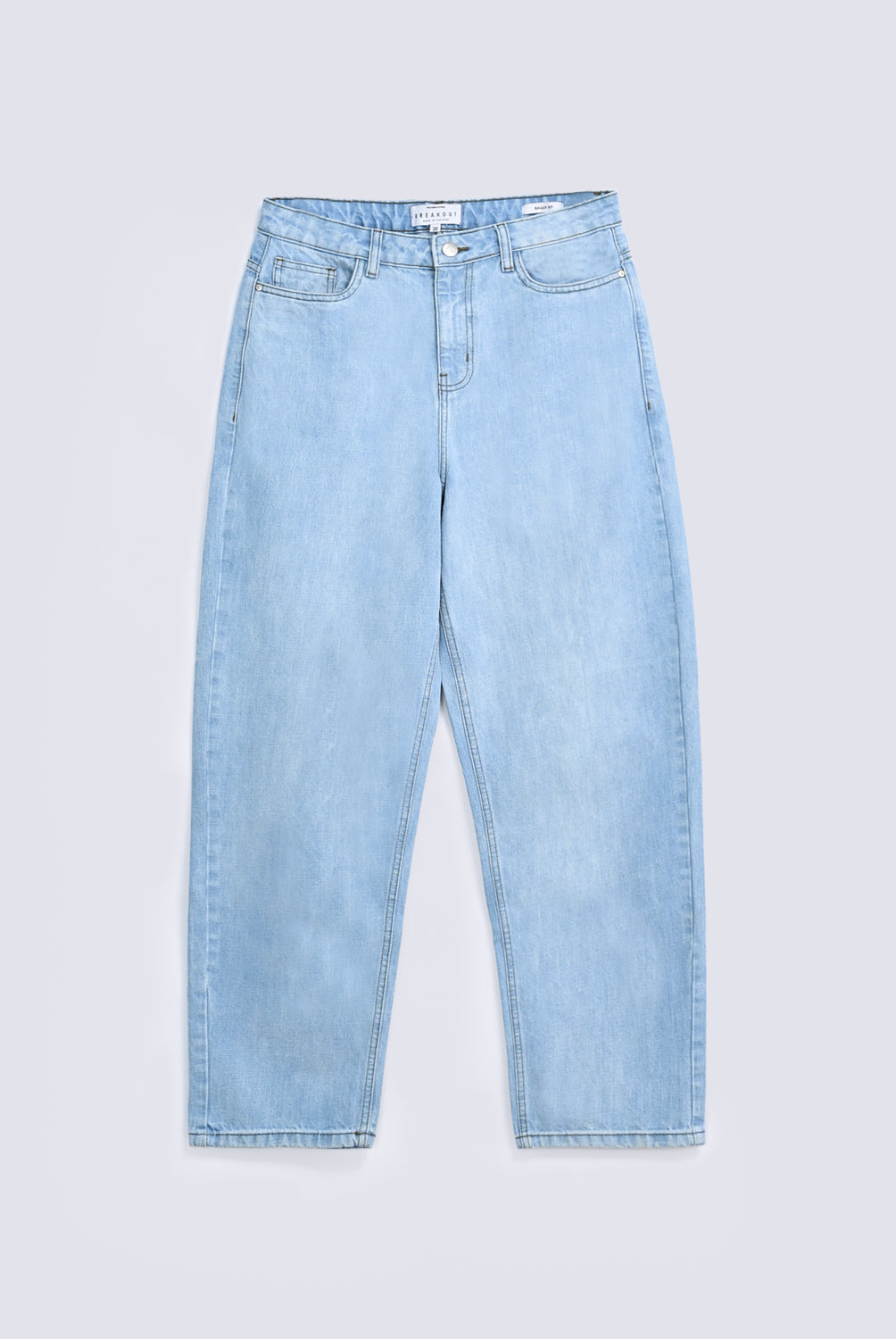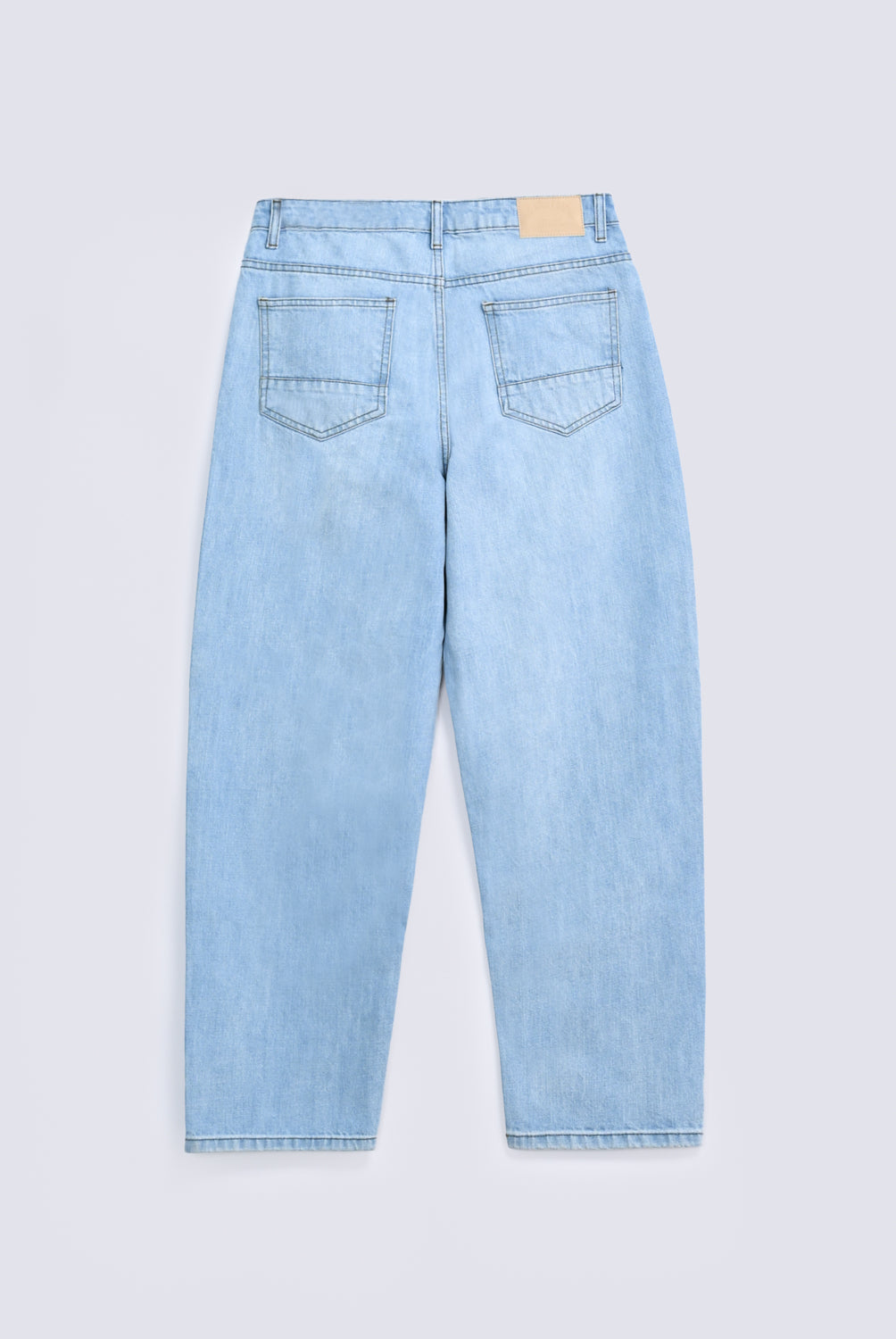 Light blue denim in pure cotton with a wide leg and relaxed feel.