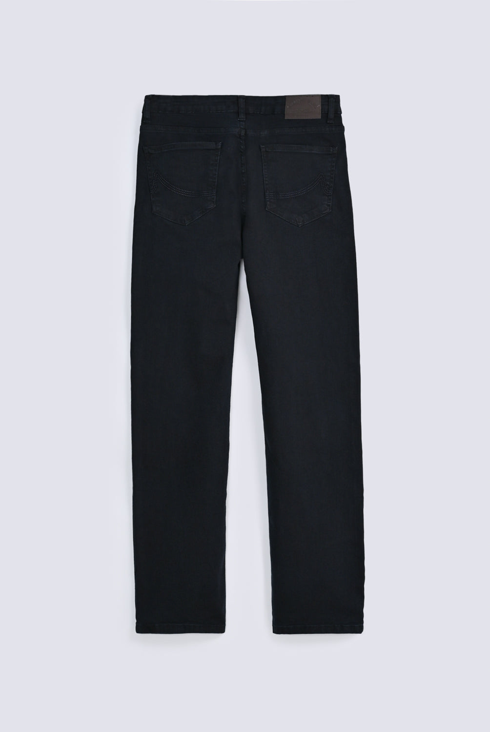 Blue denim in a cotton synthetic blend, designed in a slim relaxed fit with added stretch for comfort.