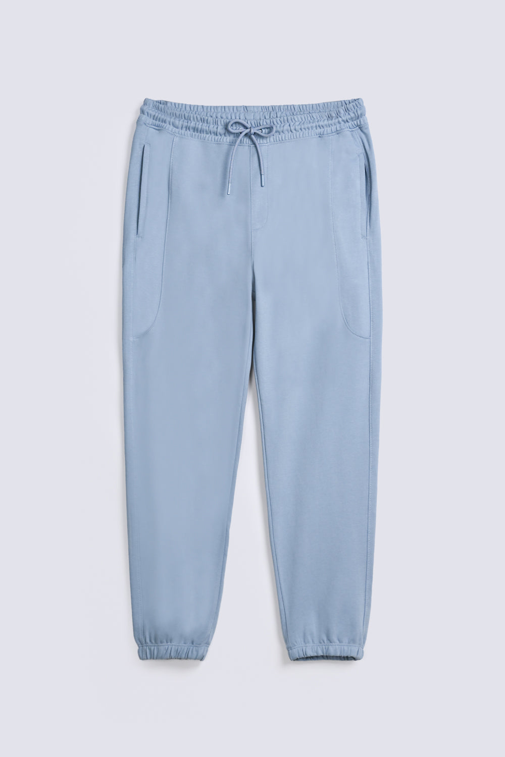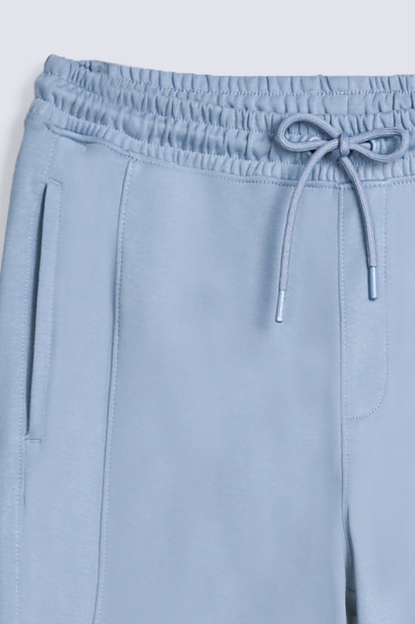 Sky blue cotton joggers with an elasticated drawstring waistband and a single back pocket.