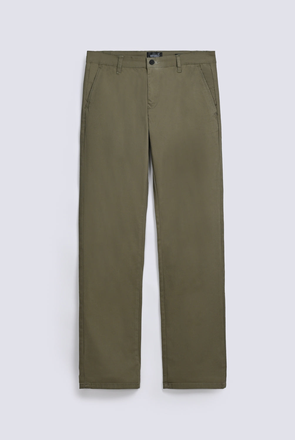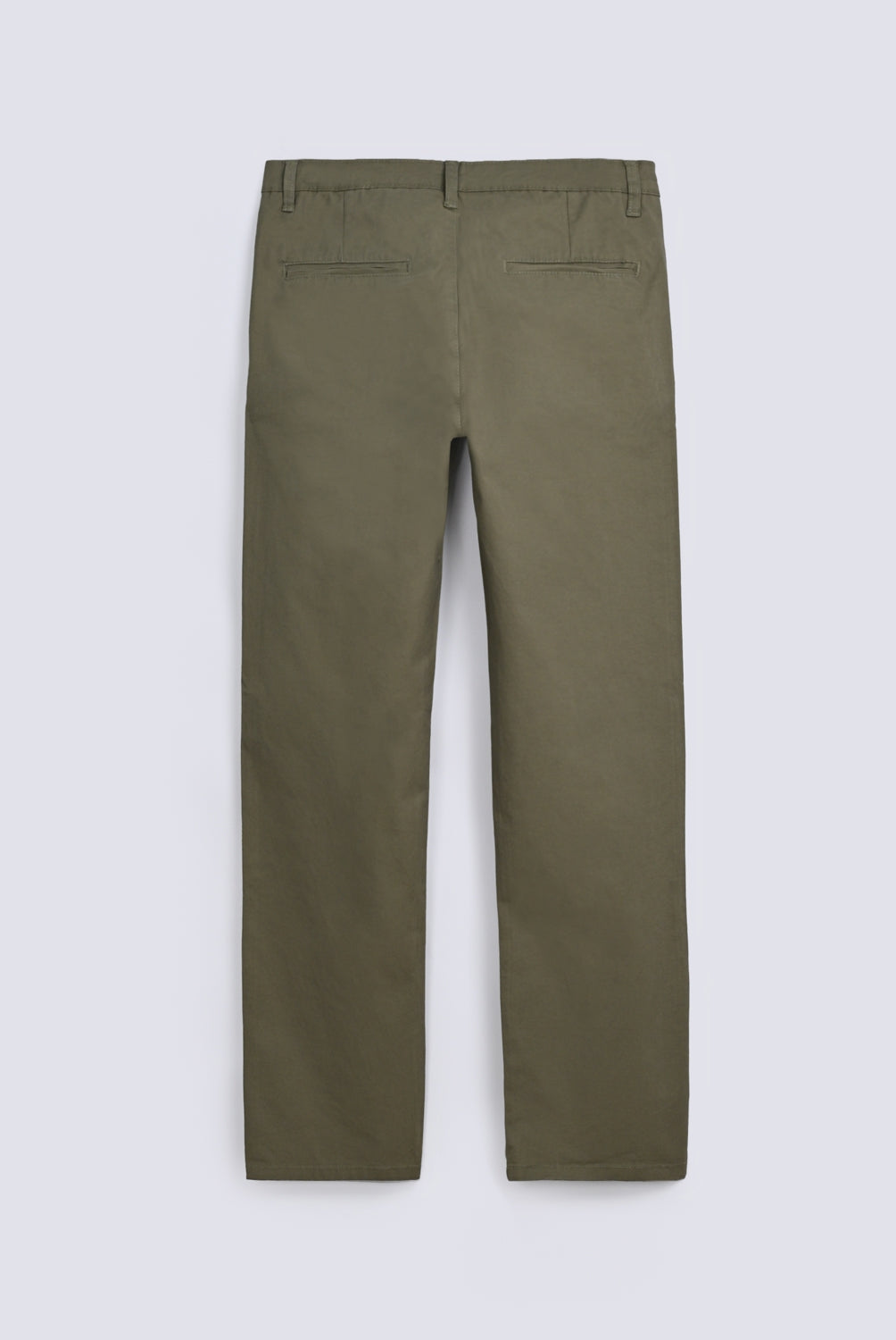 Olive chinos in cotton with a slim relaxed fit, featuring welt pockets at the back.