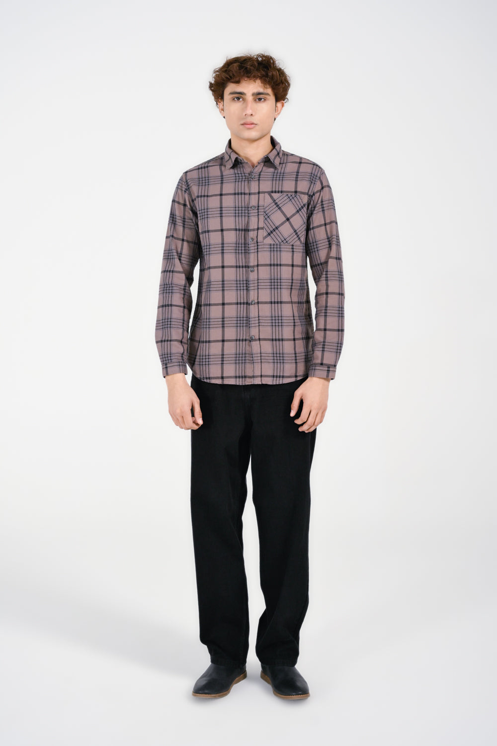BUTTON DOWN TEXTURED CHECK SHIRT