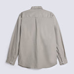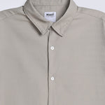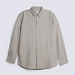 Sage green shirt in a cotton synthetic blend, featuring full length sleeves and white buttons.
