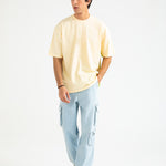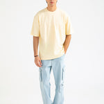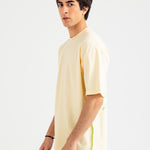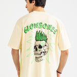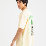 Lime yellow cotton tee in a relaxed baggy fit, featuring a plain front and a large graphic print on the back.