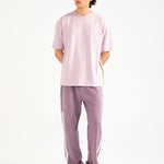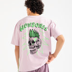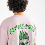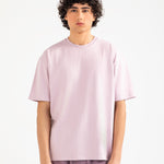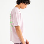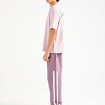 Lavender cotton tee in a relaxed baggy fit, featuring a plain front and a large graphic print on the back.