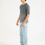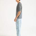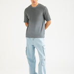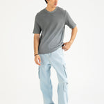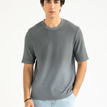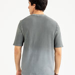 Grey cotton tee with a textured finish, featuring a faded washed effect that transitions from bottom to top on both front and back.