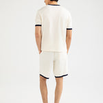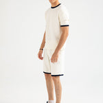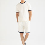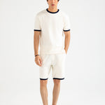 Off-white muscle fit tee in a stretchy cotton synthetic blend, finished with contrasting trim on the neckline and sleeves.