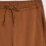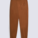 Rust cotton joggers with an elasticated drawstring waistband and a single back pocket.