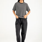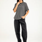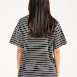 Cotton tee with horizontal black and grey stripes, finished with a soft textured feel in a classic regular fit.