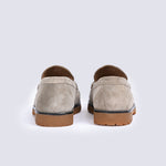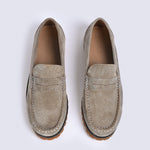 Soft suede with white contrast stitching, set on a chunky brown sole for a bold yet classic look.