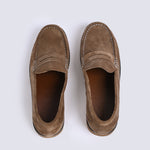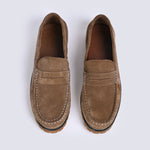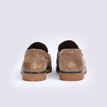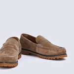 Soft suede with white contrast stitching, set on a chunky brown sole for a bold yet classic look.
