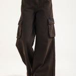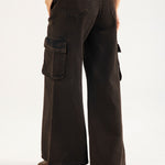 Chocolate brown denim in an ultra wide carpenter fit, detailed with large cargo pockets and a vintage fade.