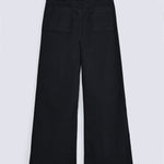 Black denim in a cotton synthetic blend with panel detailing and a flared silhouette.