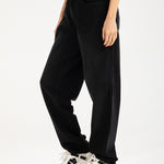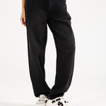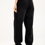 Black cotton denim designed in a relaxed barrel fit for a modern silhouette.