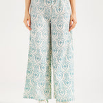 Relaxed wide leg silhouette in cotton, featuring an all-over teal and white print with an easy drawstring waistband.