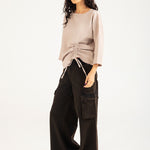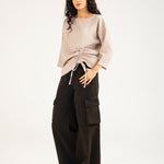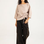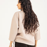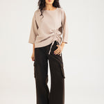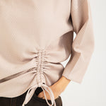 Structured top in a textured synthetic blend, finished with tie detailing on the front.
