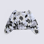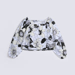 Floral printed top in a synthetic blend, featuring long sleeves with elasticated cuffs and detailing at the neckline.