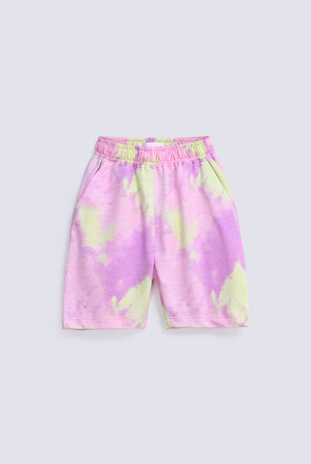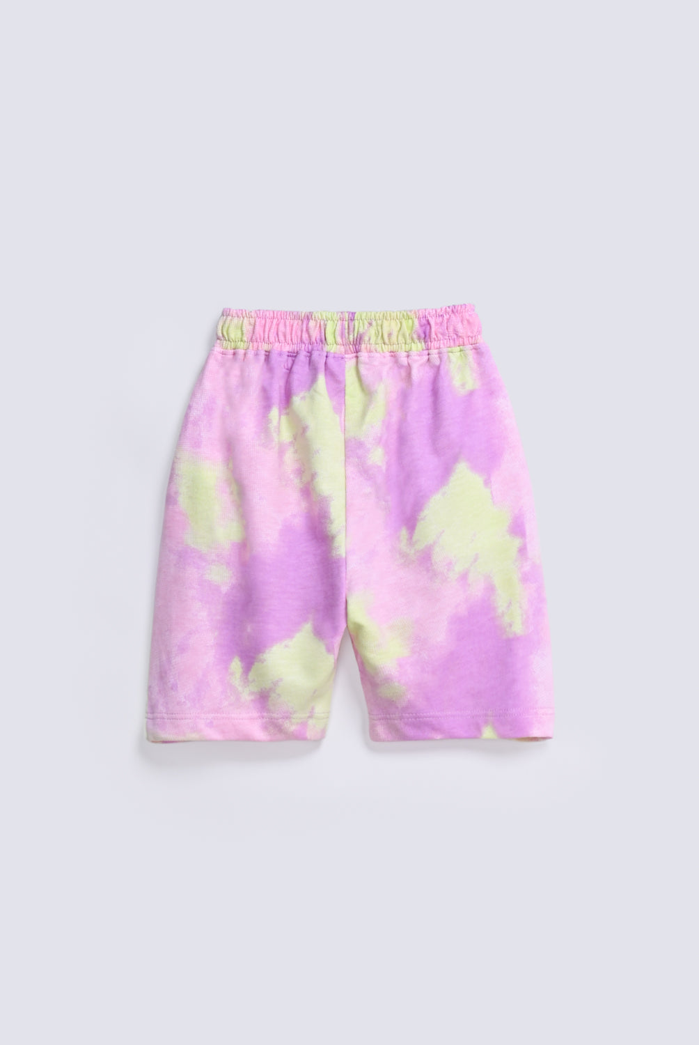Swirled in dreamy shades of pink, purple, and yellow, these soft cotton shorts feature an elasticated waistband and side pockets.