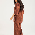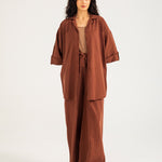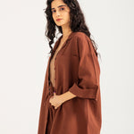 Oversized shirt in a breathable cotton linen blend, featuring roll-up sleeve tabs, matching buttons, and dual chest pockets for a casual finish.