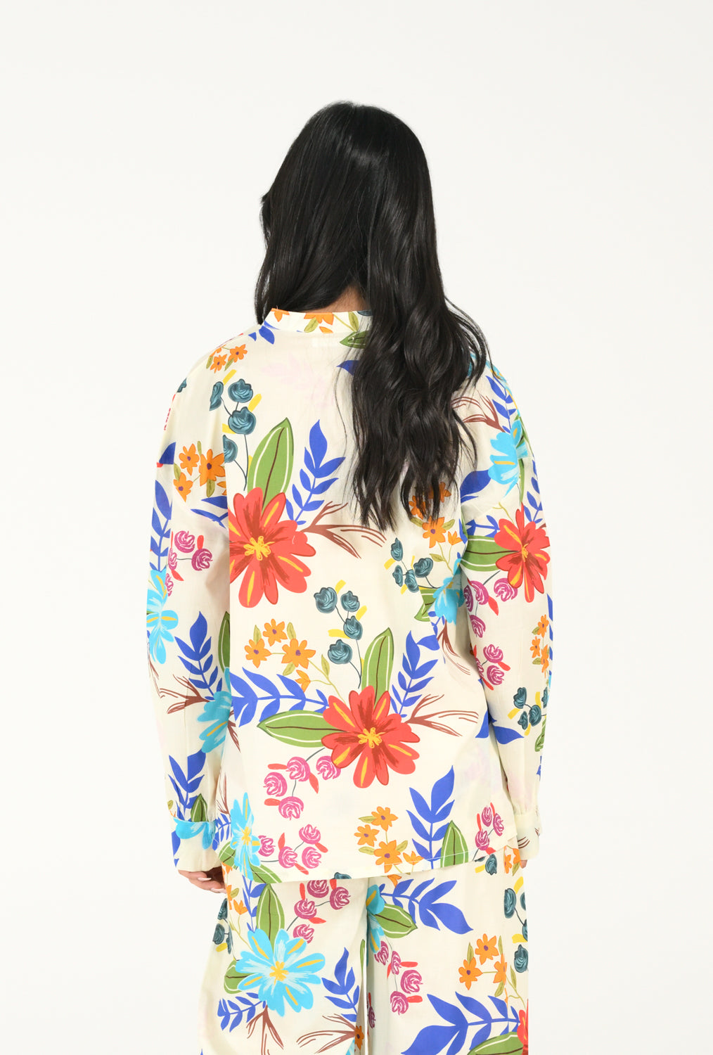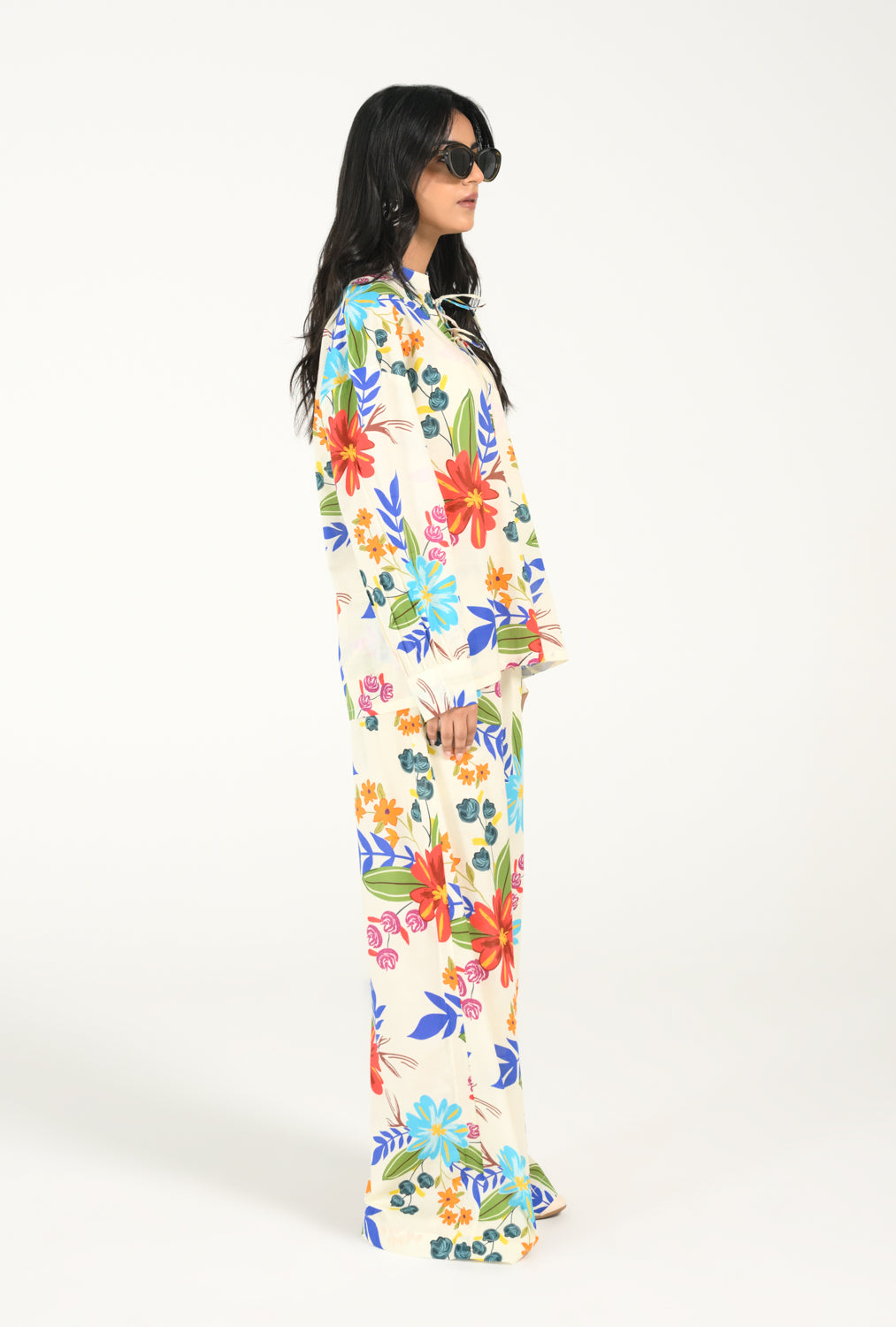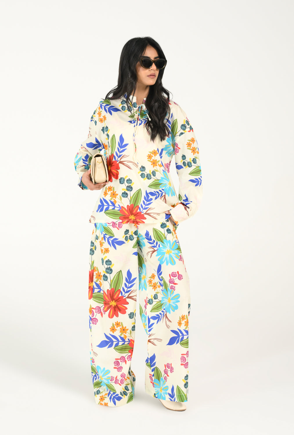 Loose-fit floral printed top with a soft tie-neck detail, bringing a fresh, playful vibe to everyday dressing.