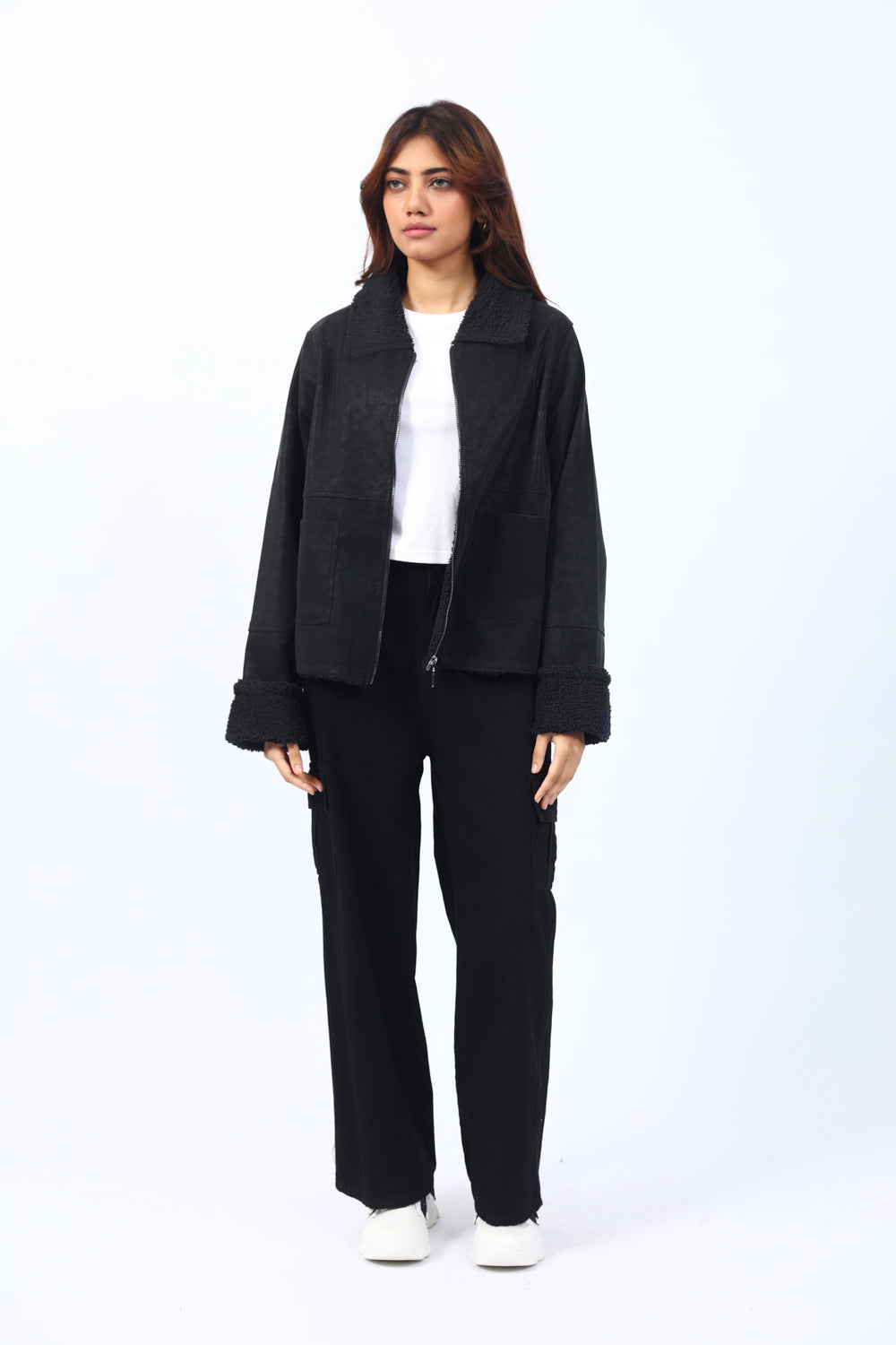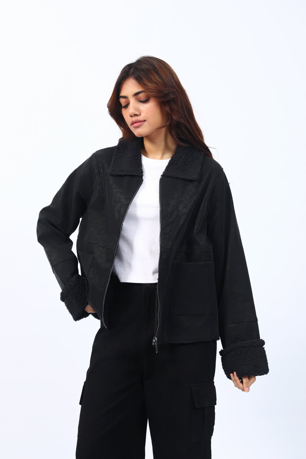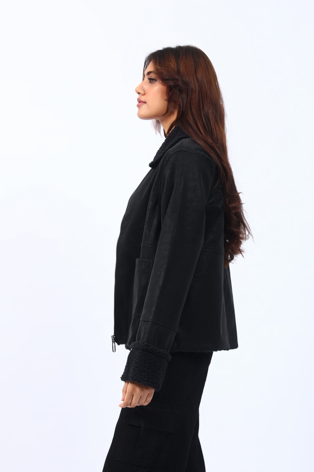 SHEARLING LINED PU JACKET