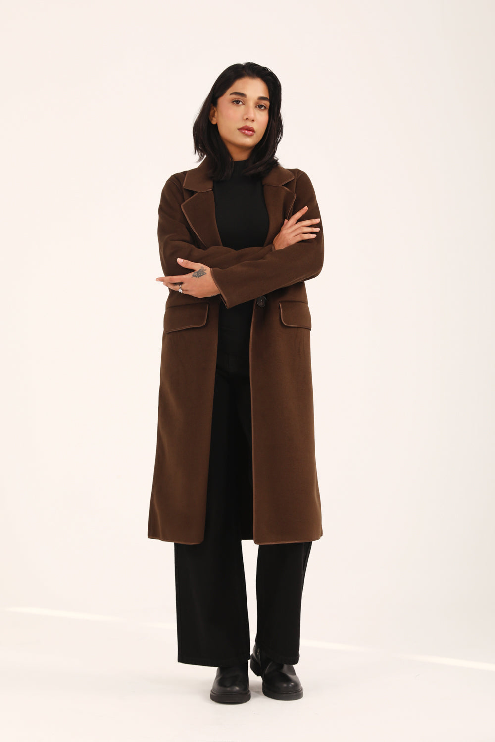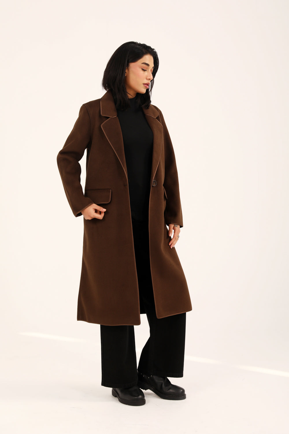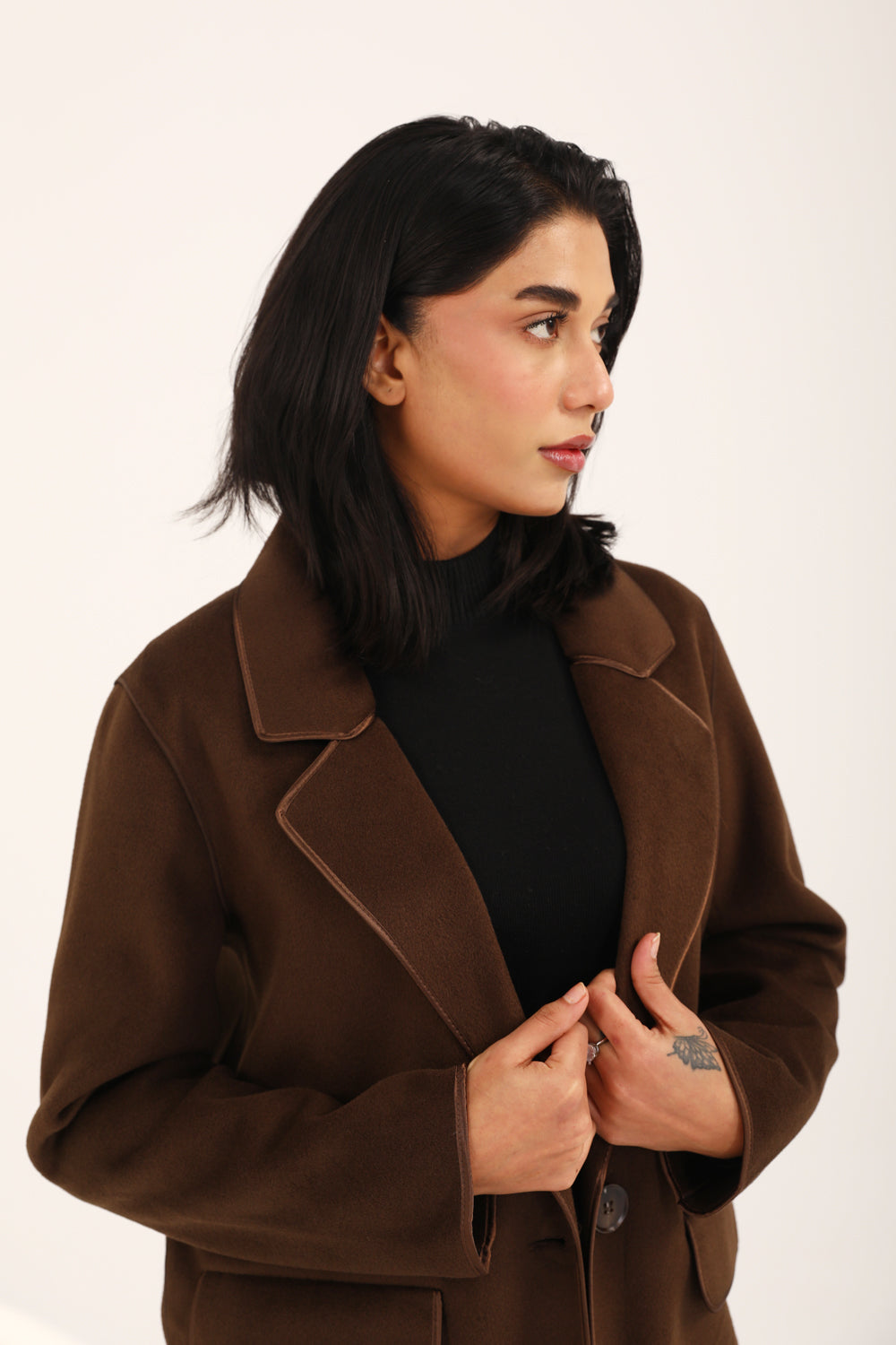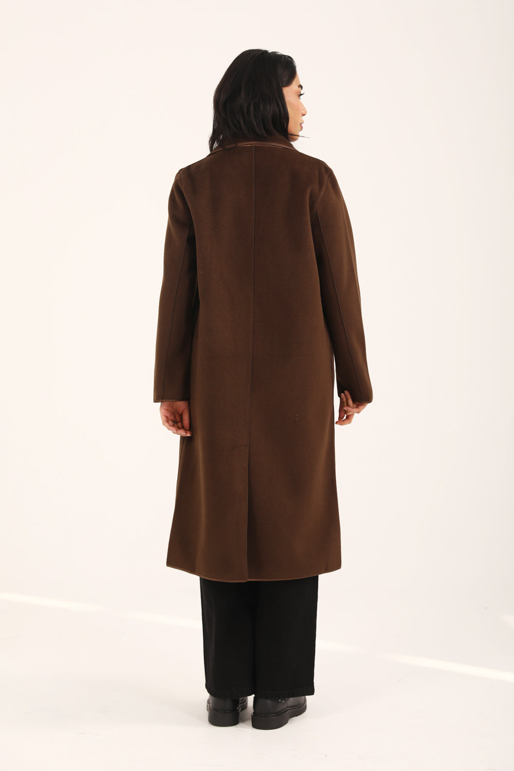 FAUX SUEDE COAT WITH SATIN TIPPING