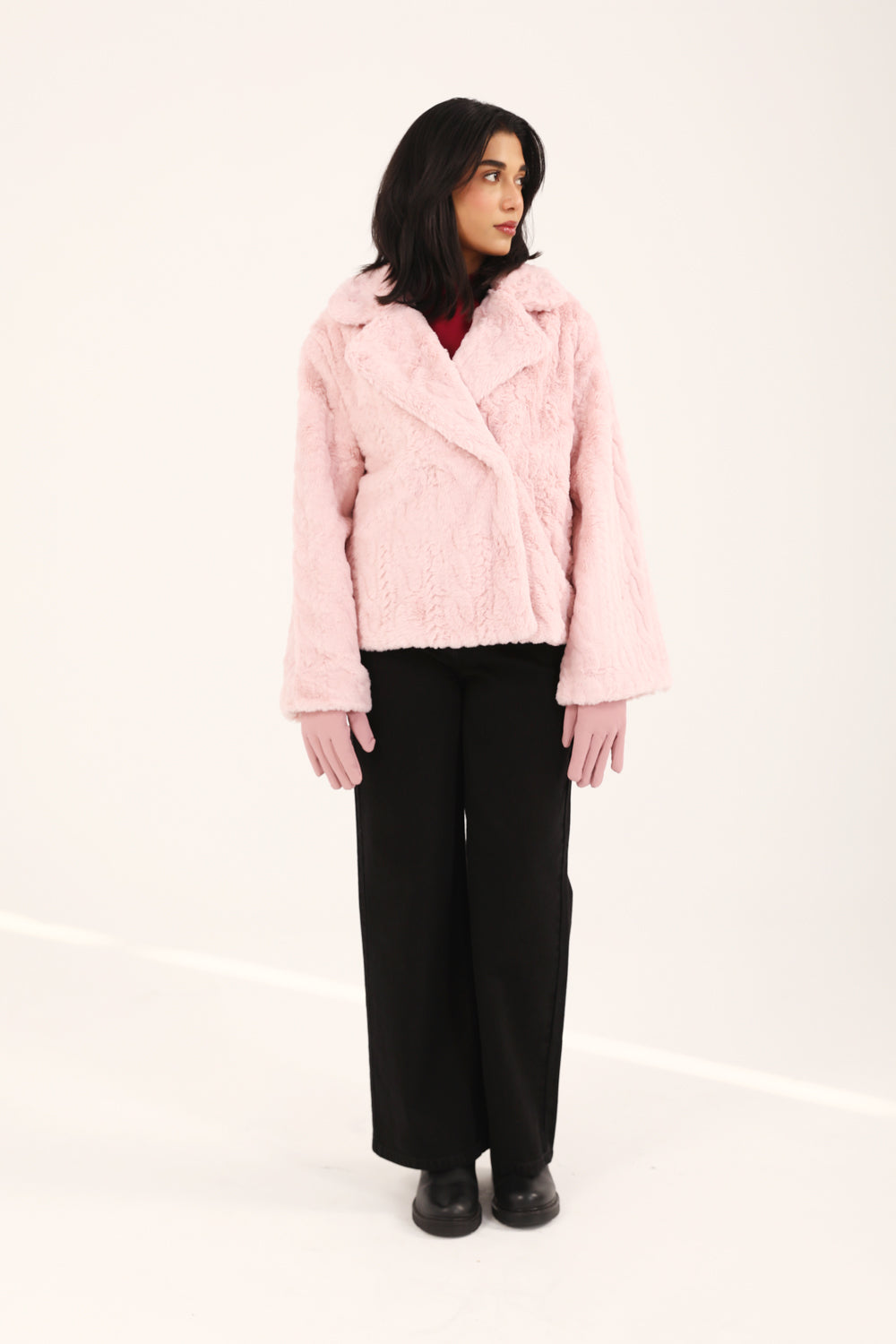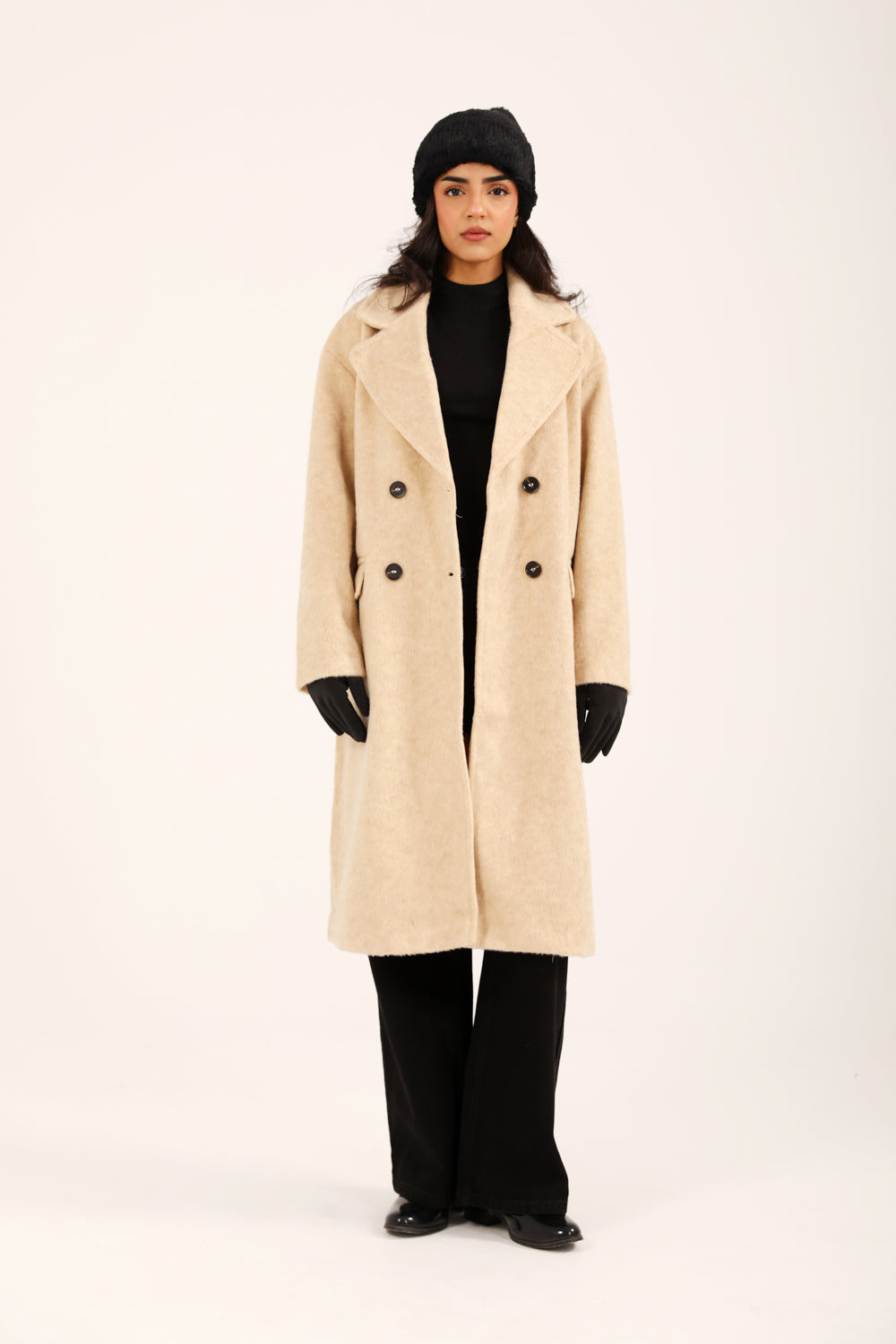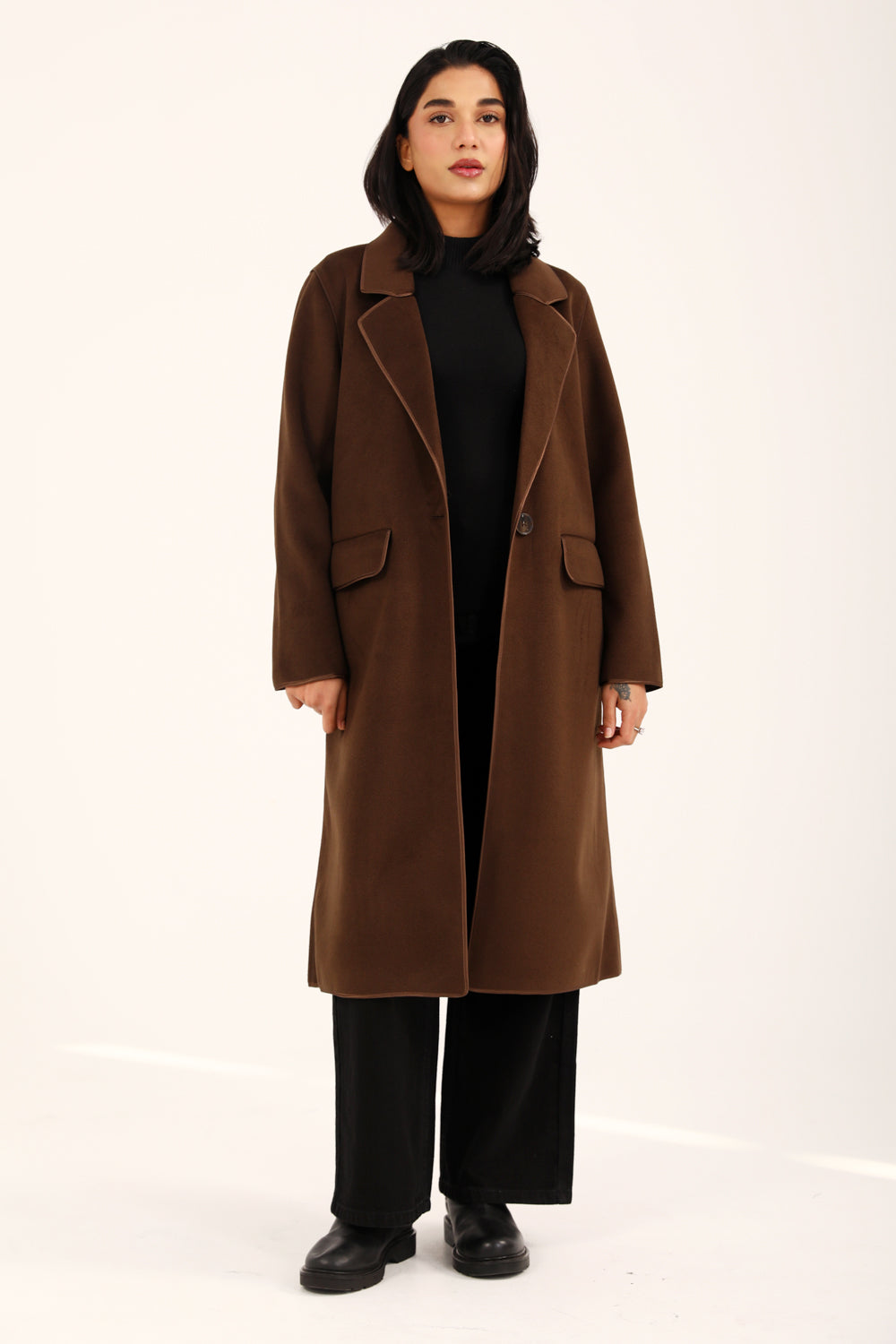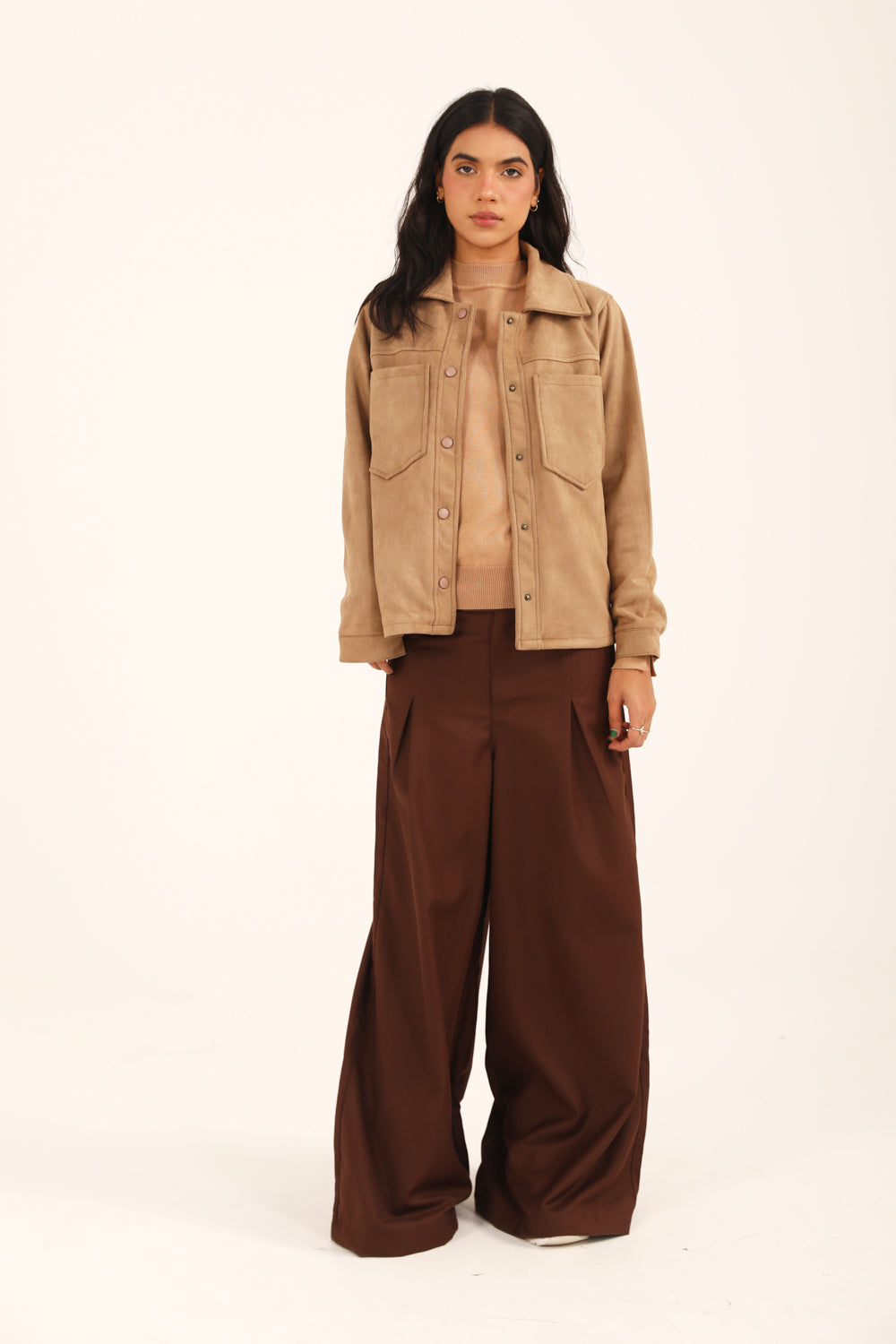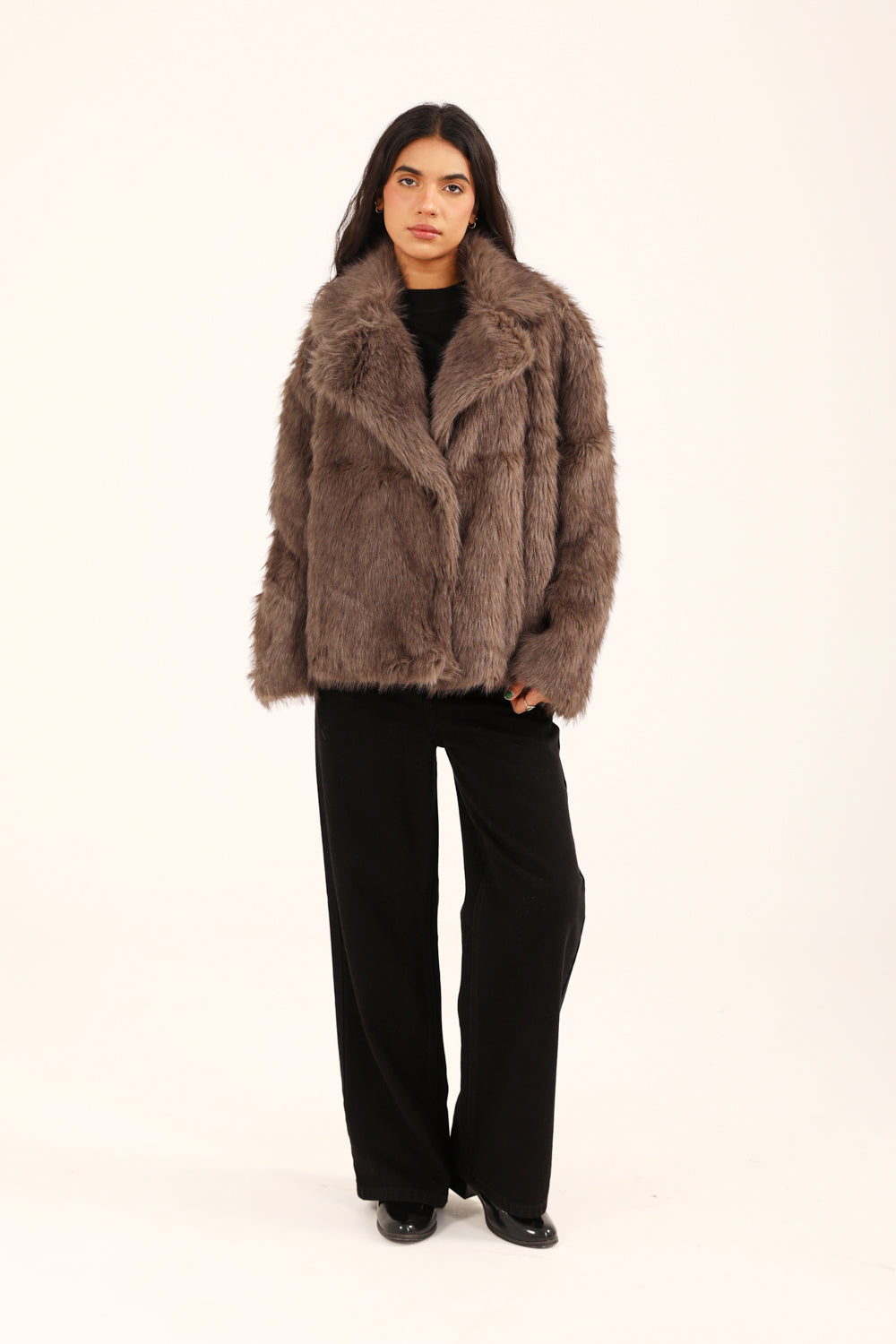 FAUX SUEDE COAT WITH SATIN TIPPING