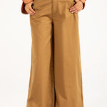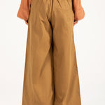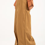 Brown cotton pants with a panelled design, featuring an extra wide fit and an elasticated waistband.